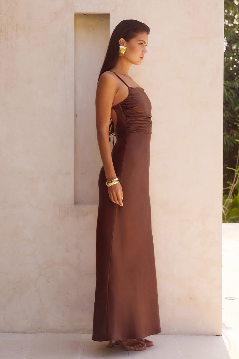 Runaway The Label - Lucienne Maxi Dress in Chocolate