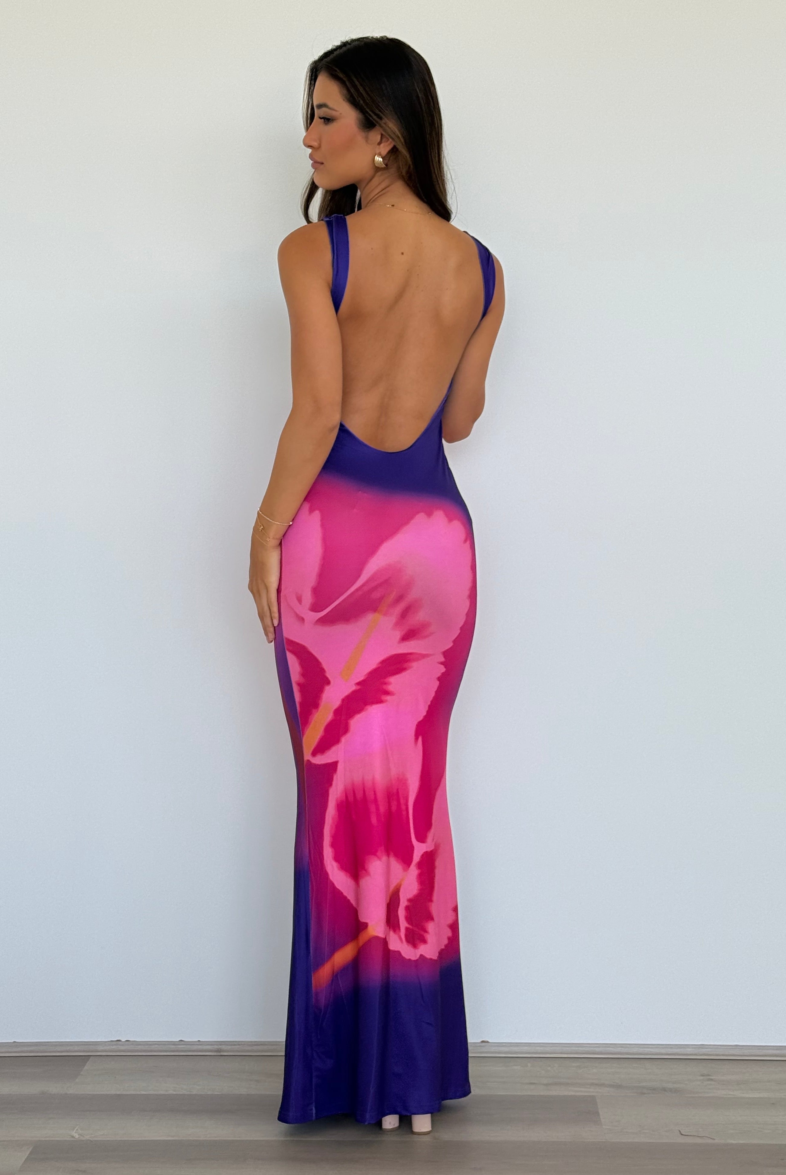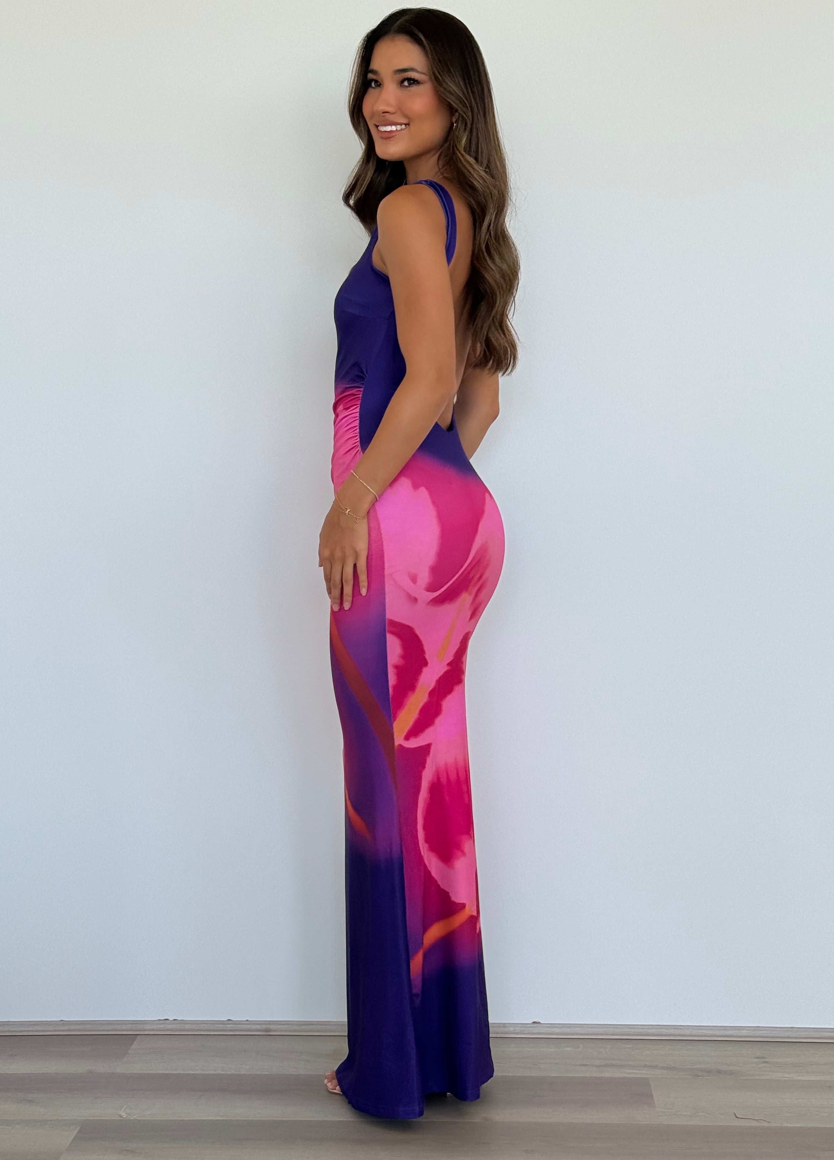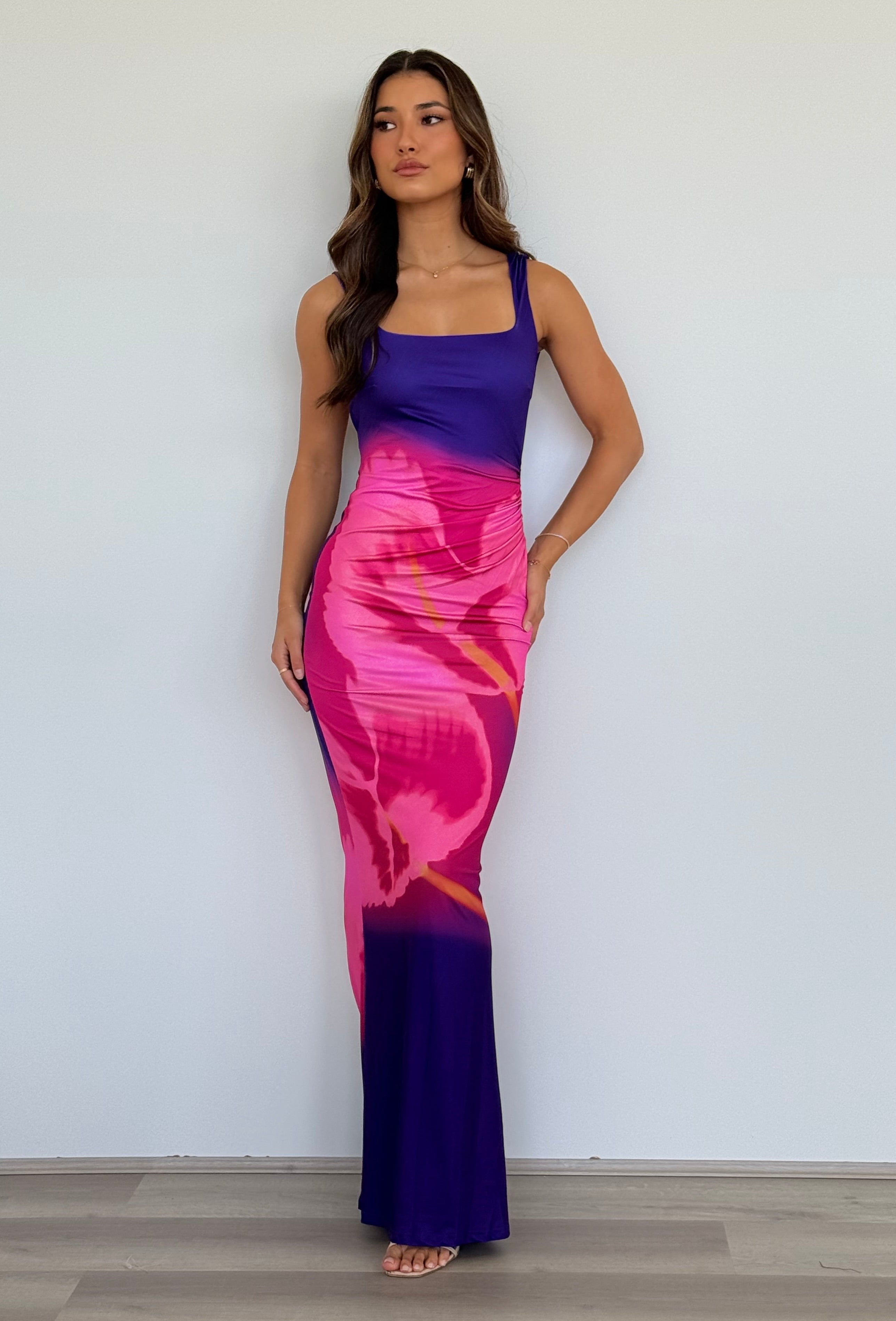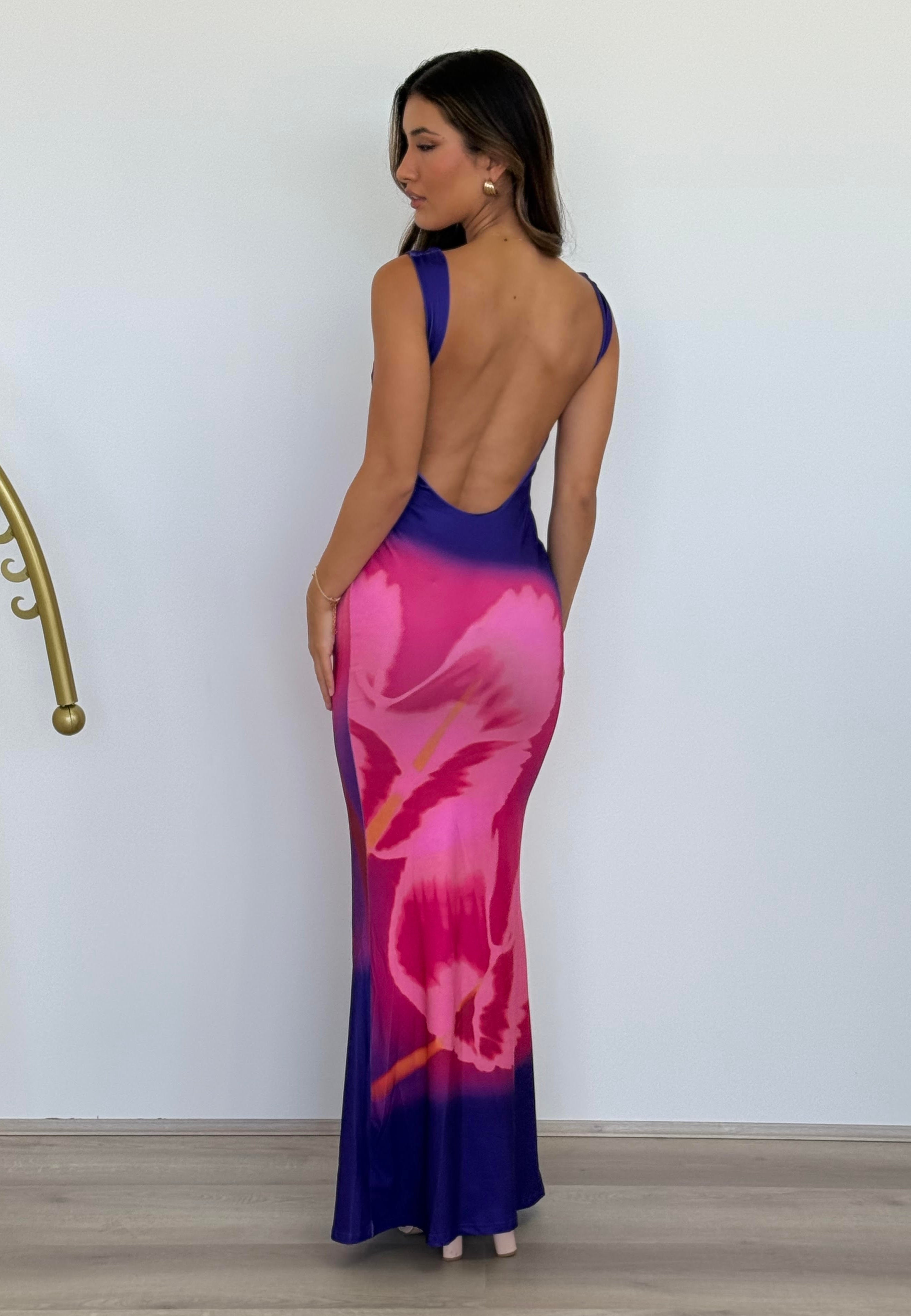 Hugging the body in a bold print with feminine hues, our Makiko Maxi Dress is the perfect balance of sexy and elegant.