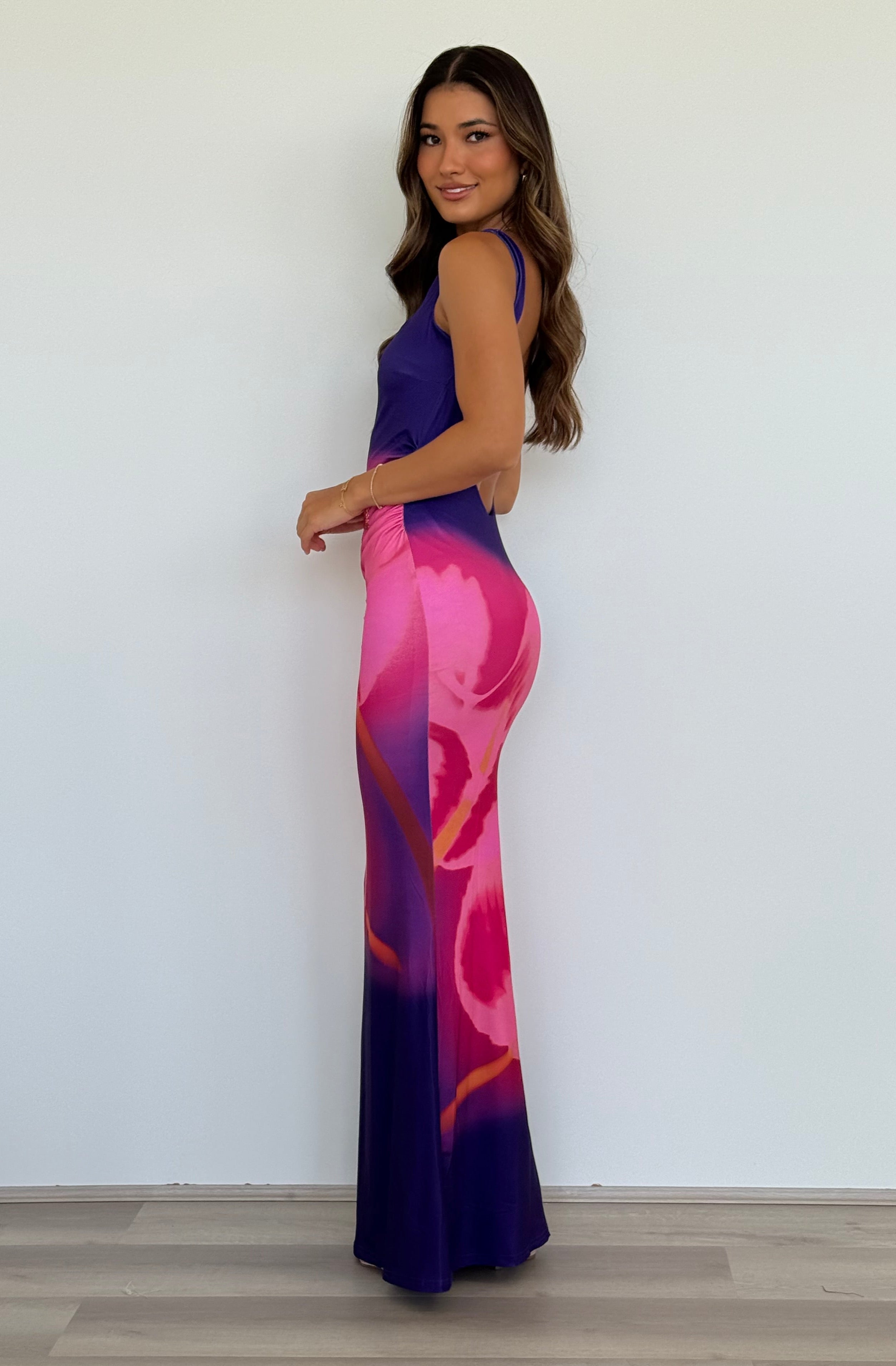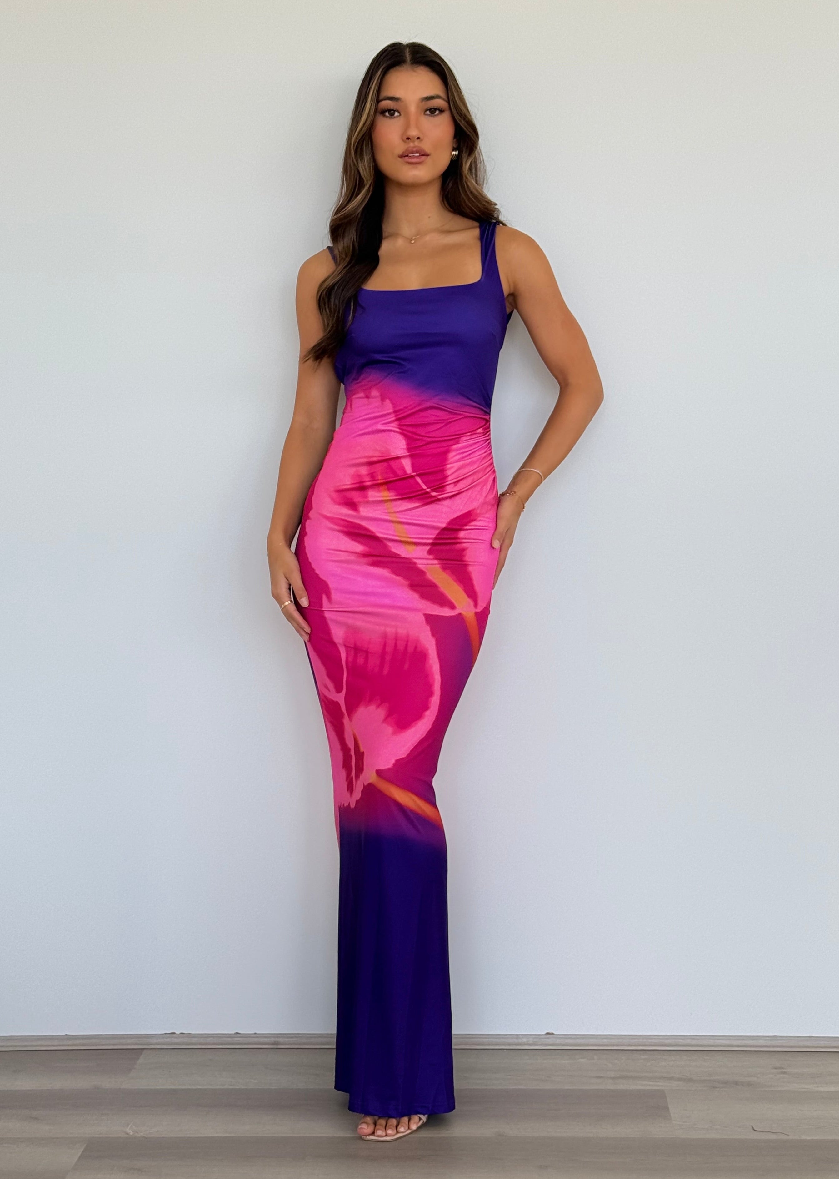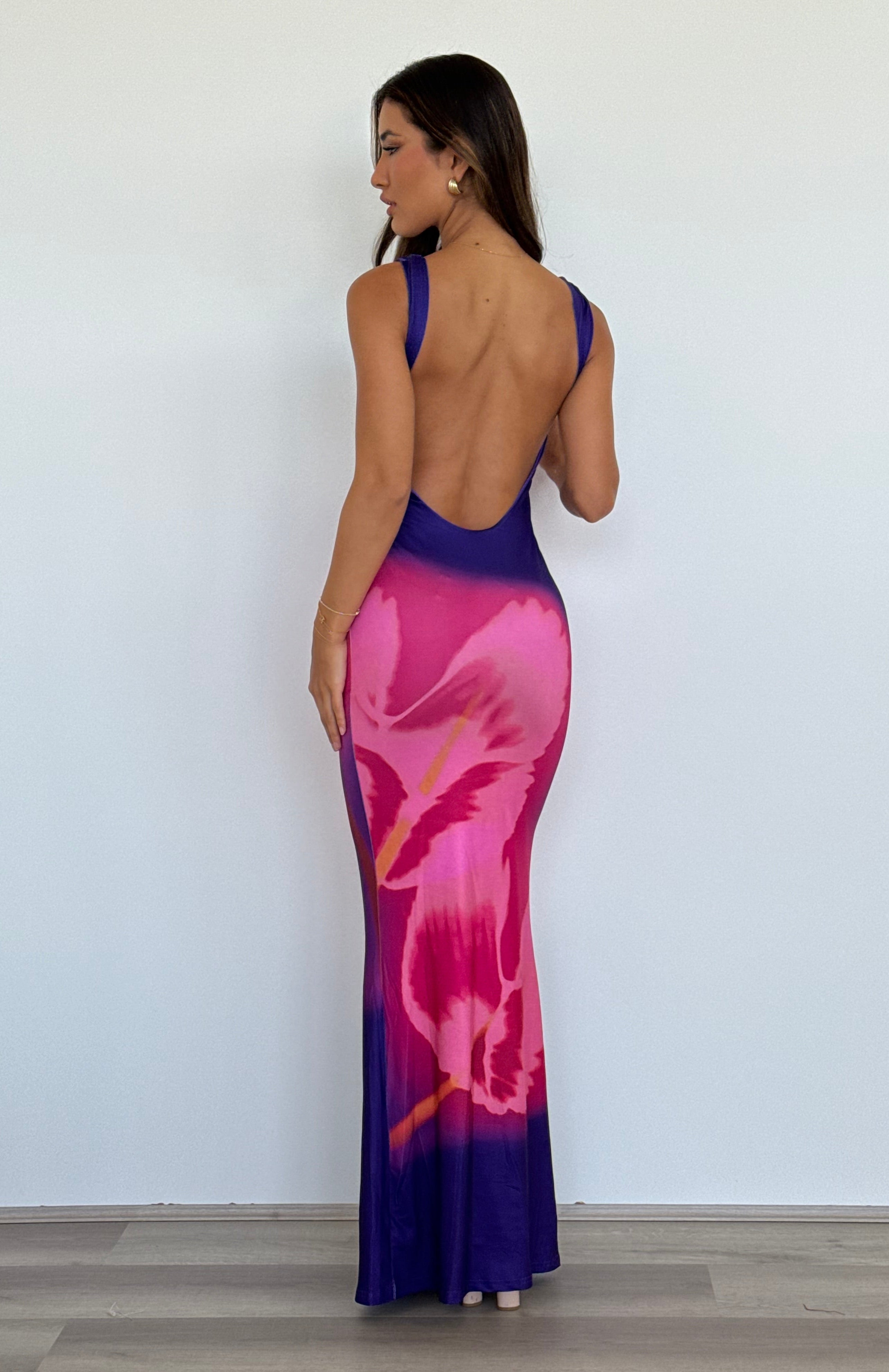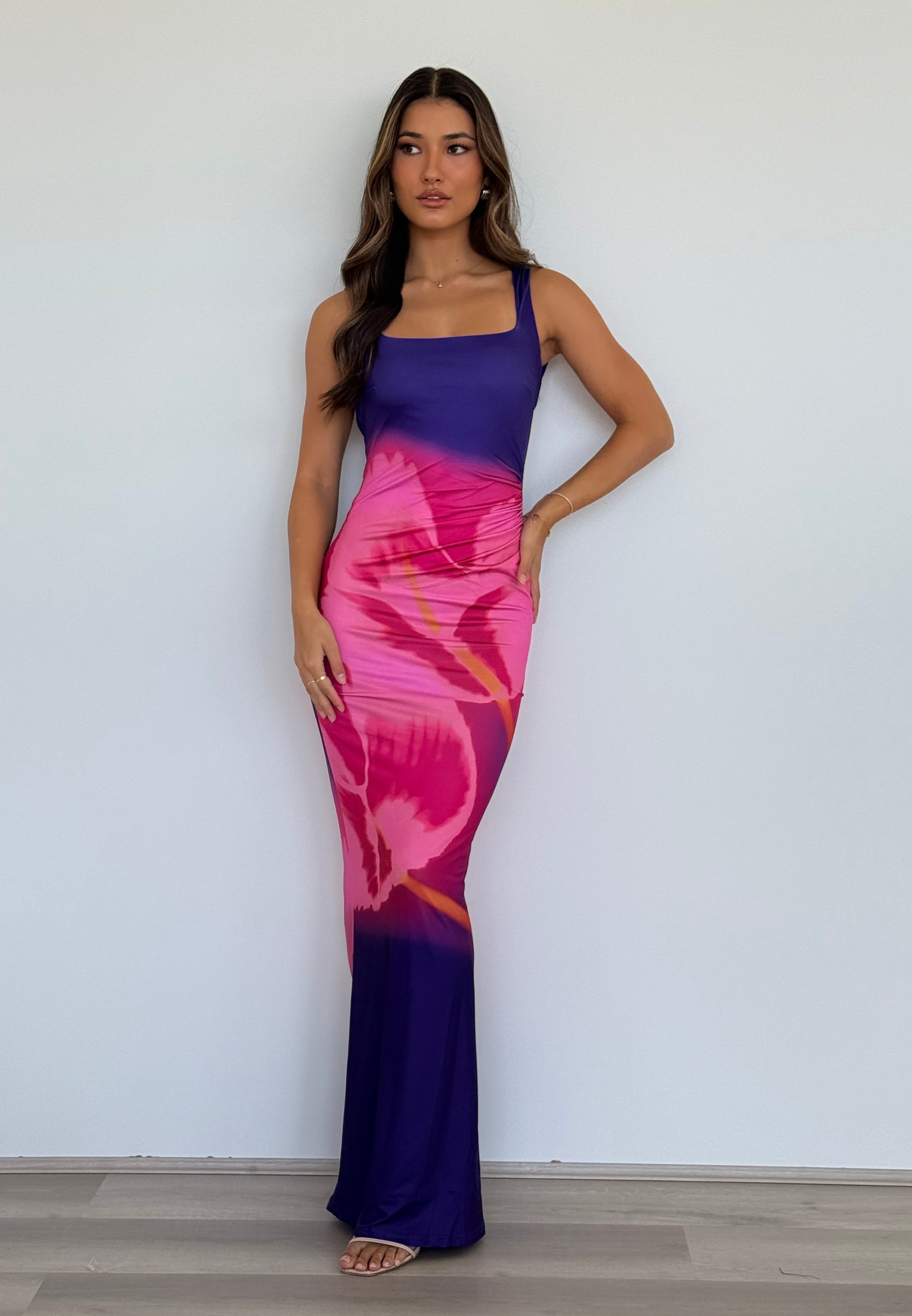 Hugging the body in a bold print with feminine hues, our Makiko Maxi Dress is the perfect balance of sexy and elegant.
