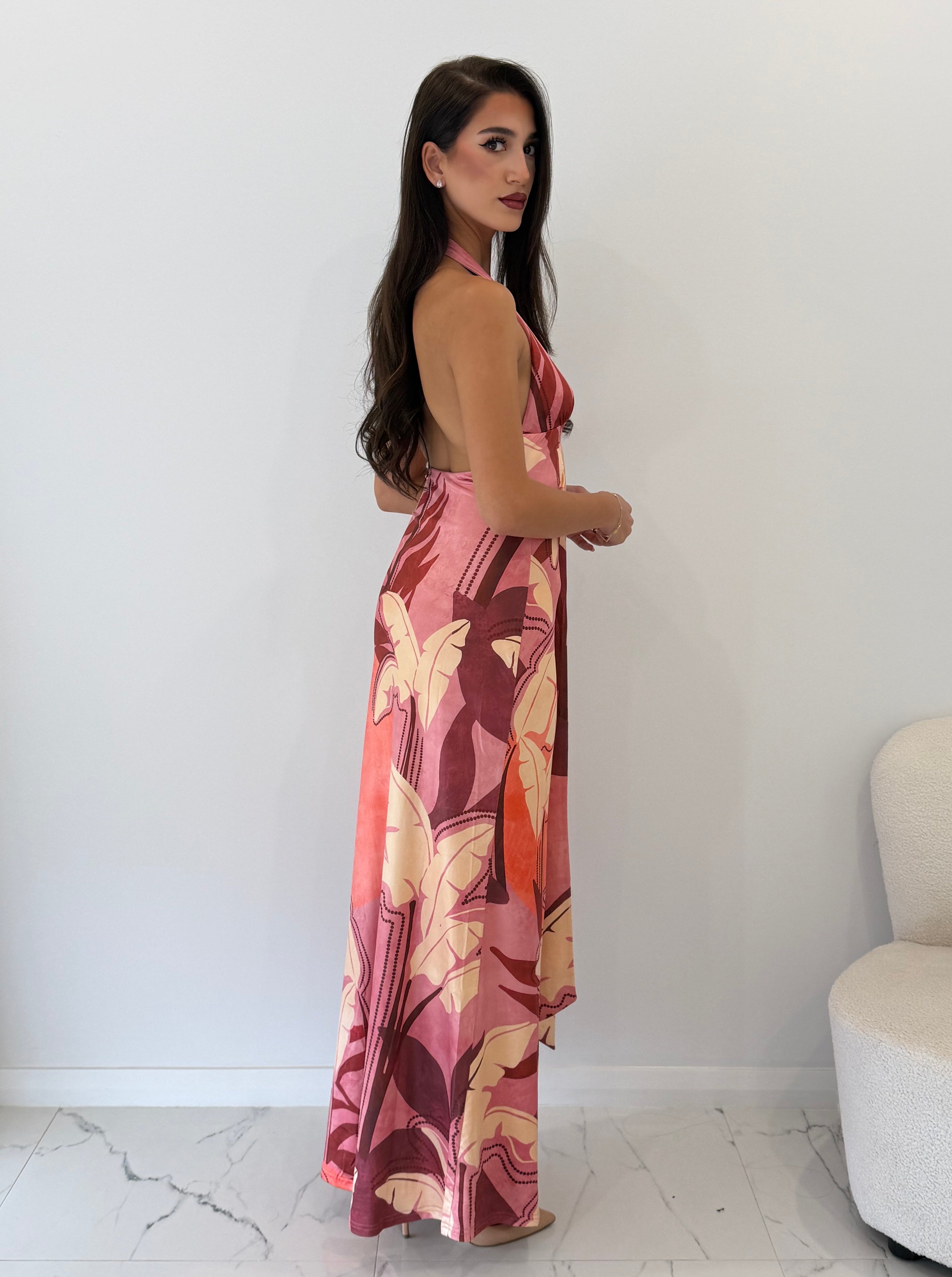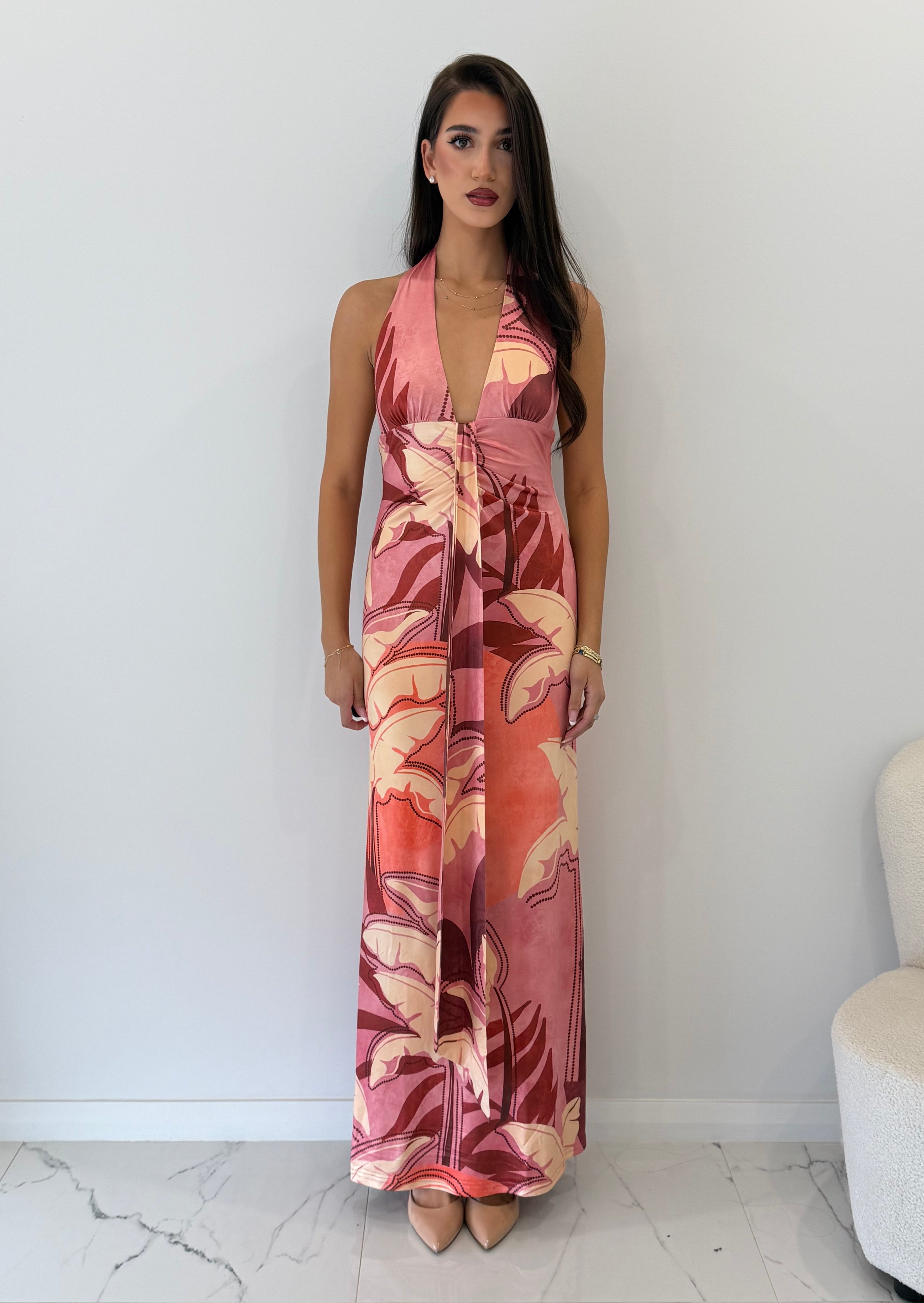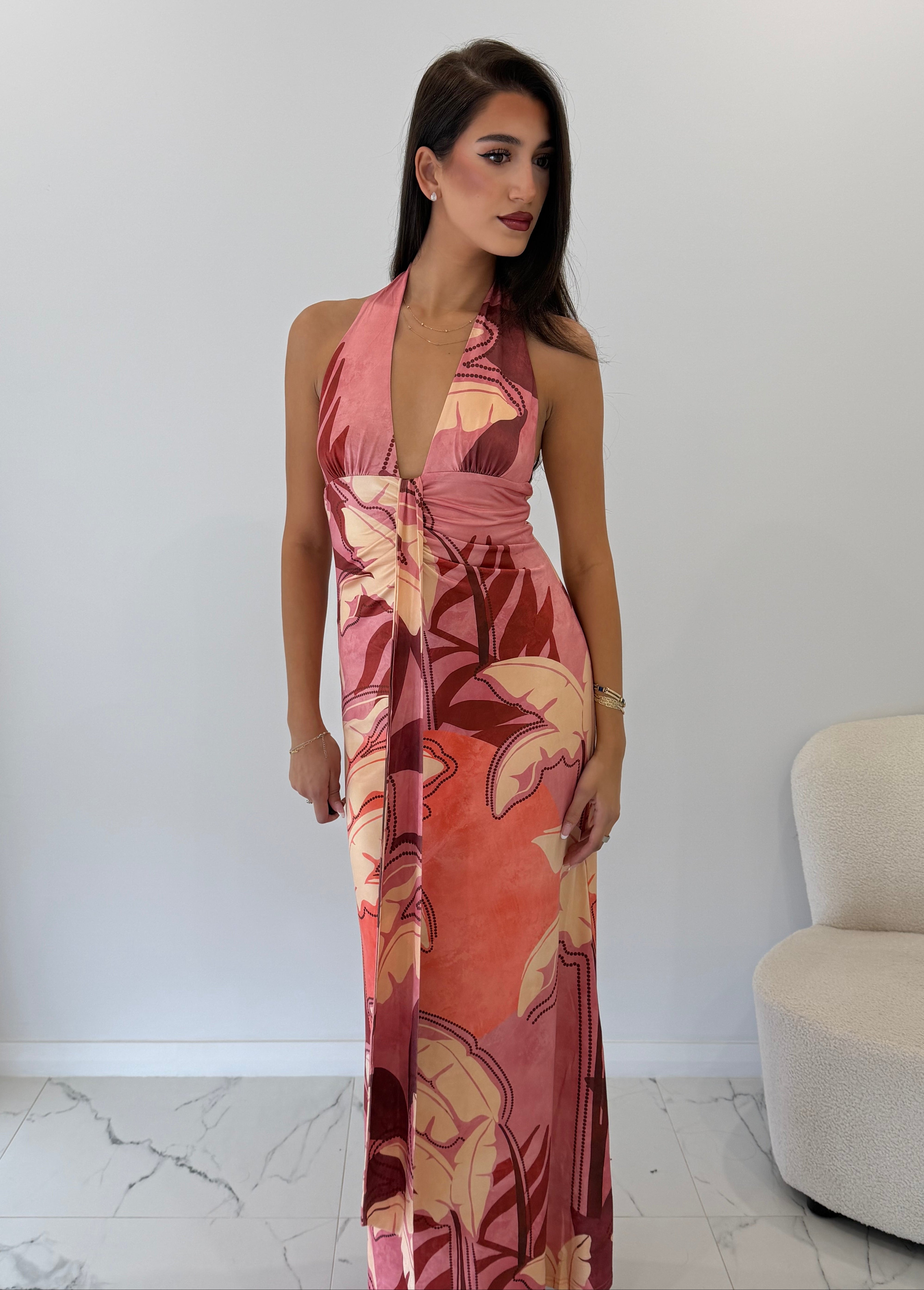 Runaway The Label - Kaeli Tie Front Halter Maxi Dress in Kaeli Berry