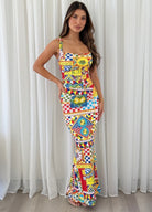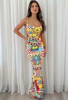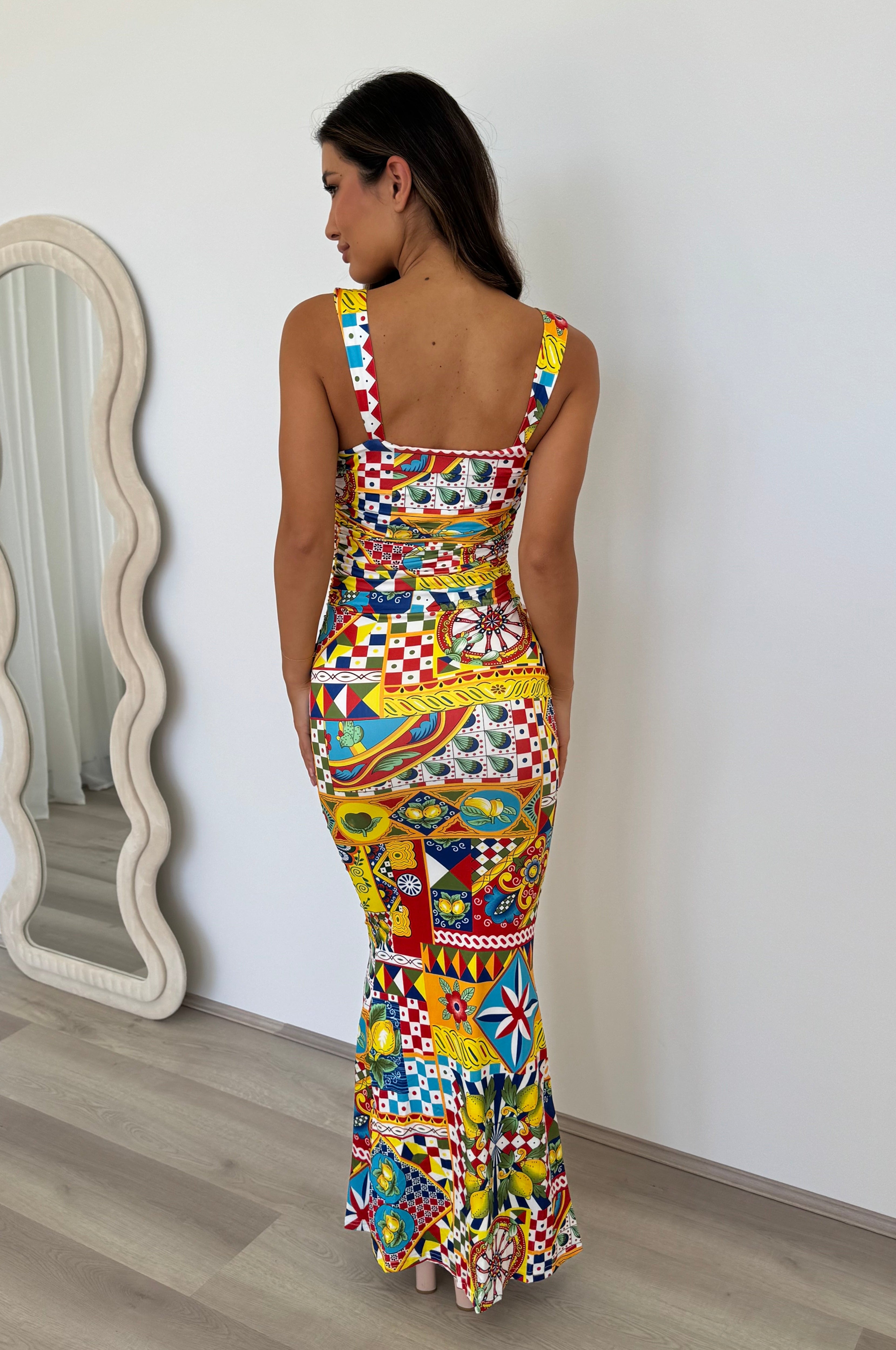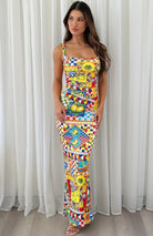 Crafted from a luxe second skin fabric all in a vibrant summer print, our Vivian Maxi Dress is an elegant silhouette with a femme fatale feel.