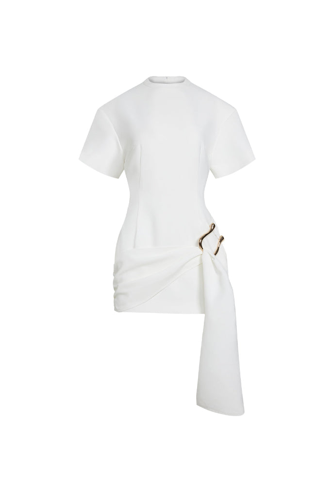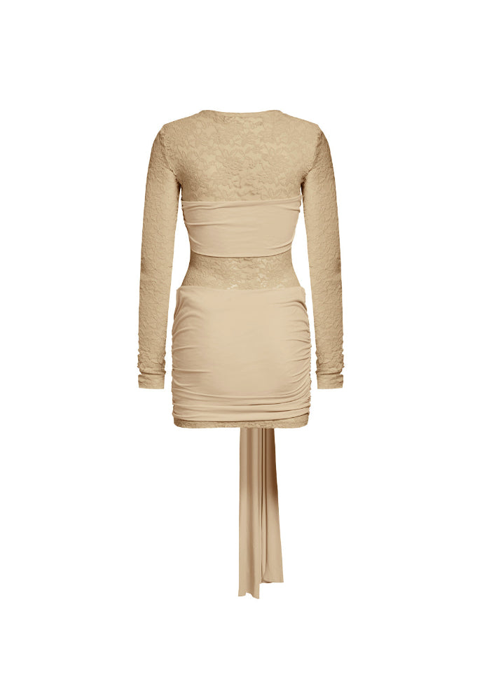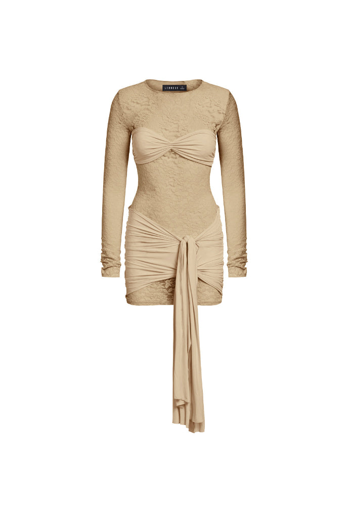 The Lioness clothing dress shows elegant sophistication through its cream-colored scheme. Ideal for formal occasions or casual days with the right accessories.