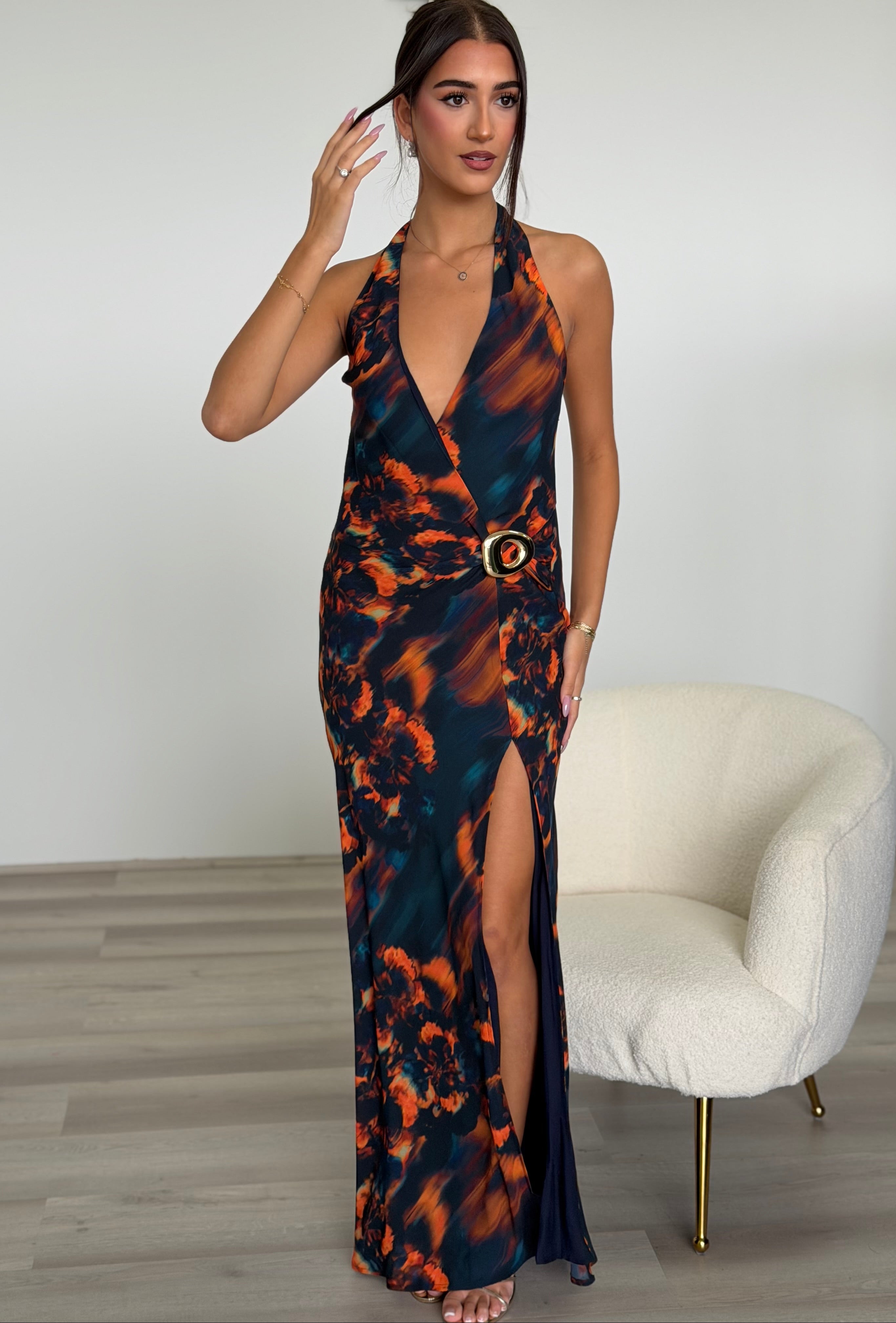 Runaway The Label - Mabella Halter Maxi Dress in Valina Orange