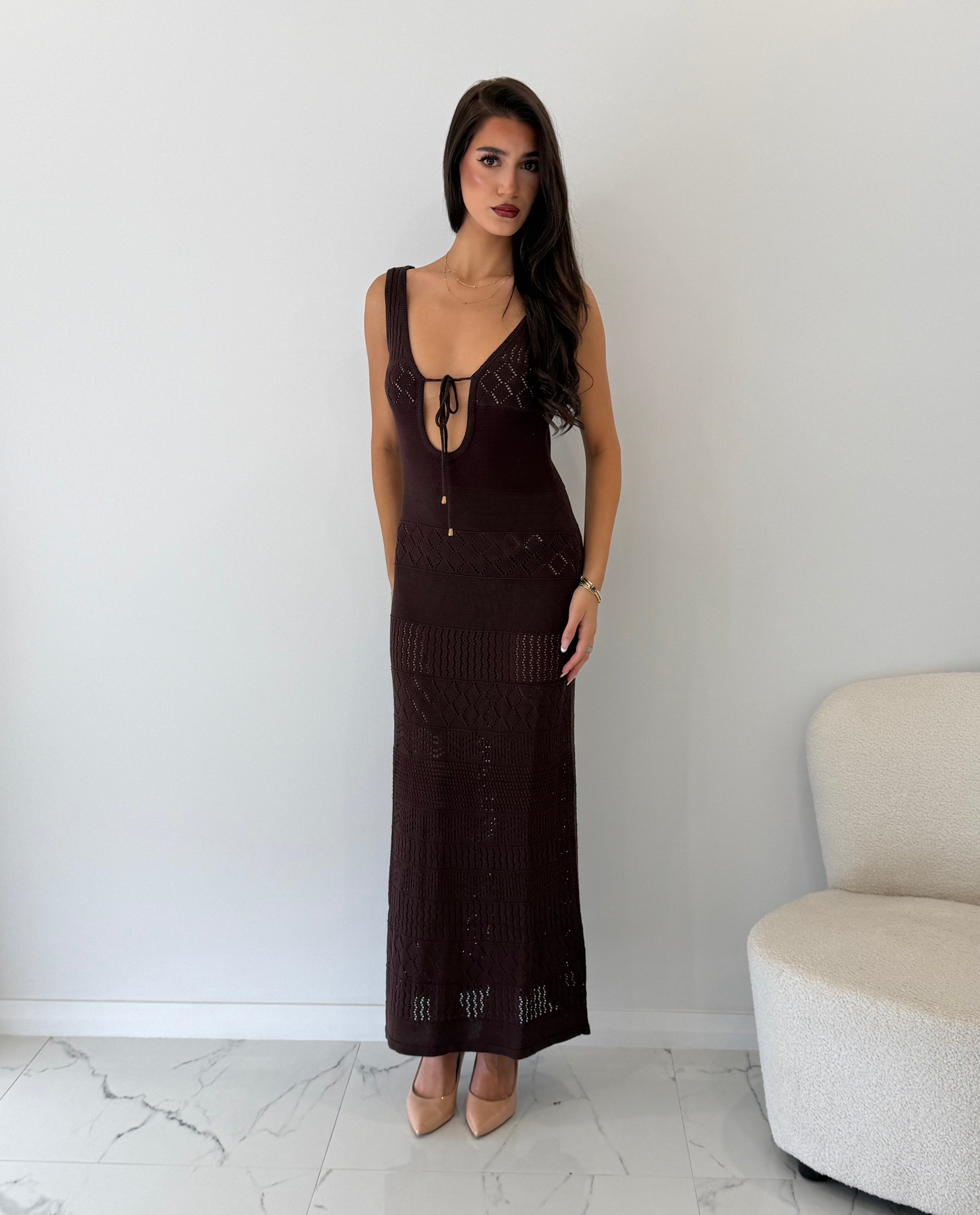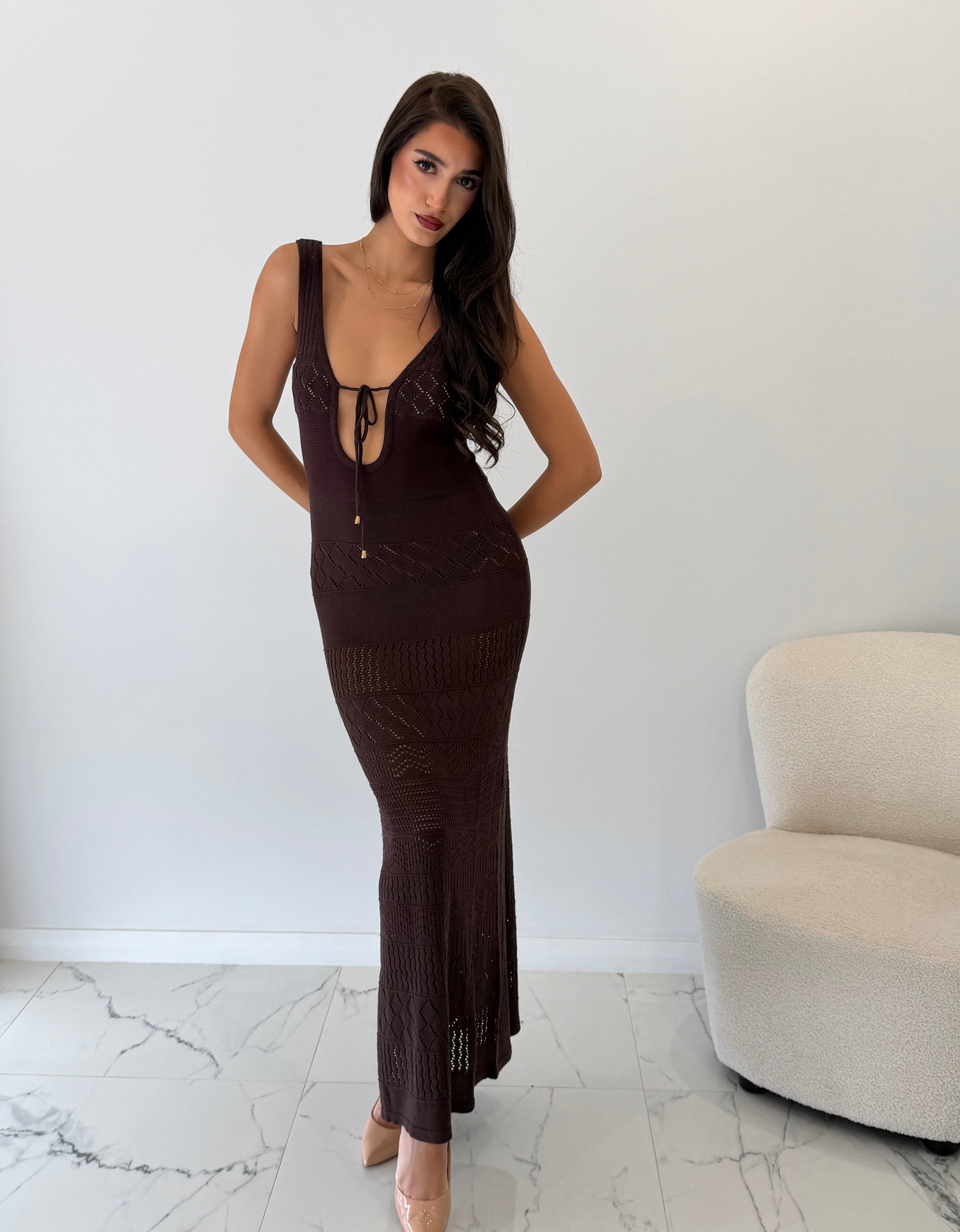 Runaway The Label - Sonoma Maxi Dress in Chocolate