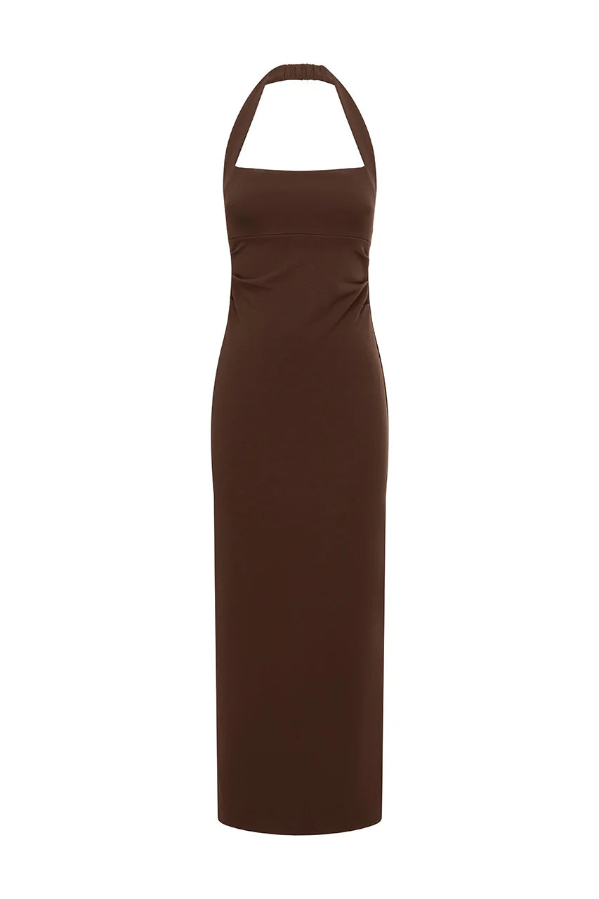 Runaway The Label - Franca Halter Midi Dress in Bitter Chocolate