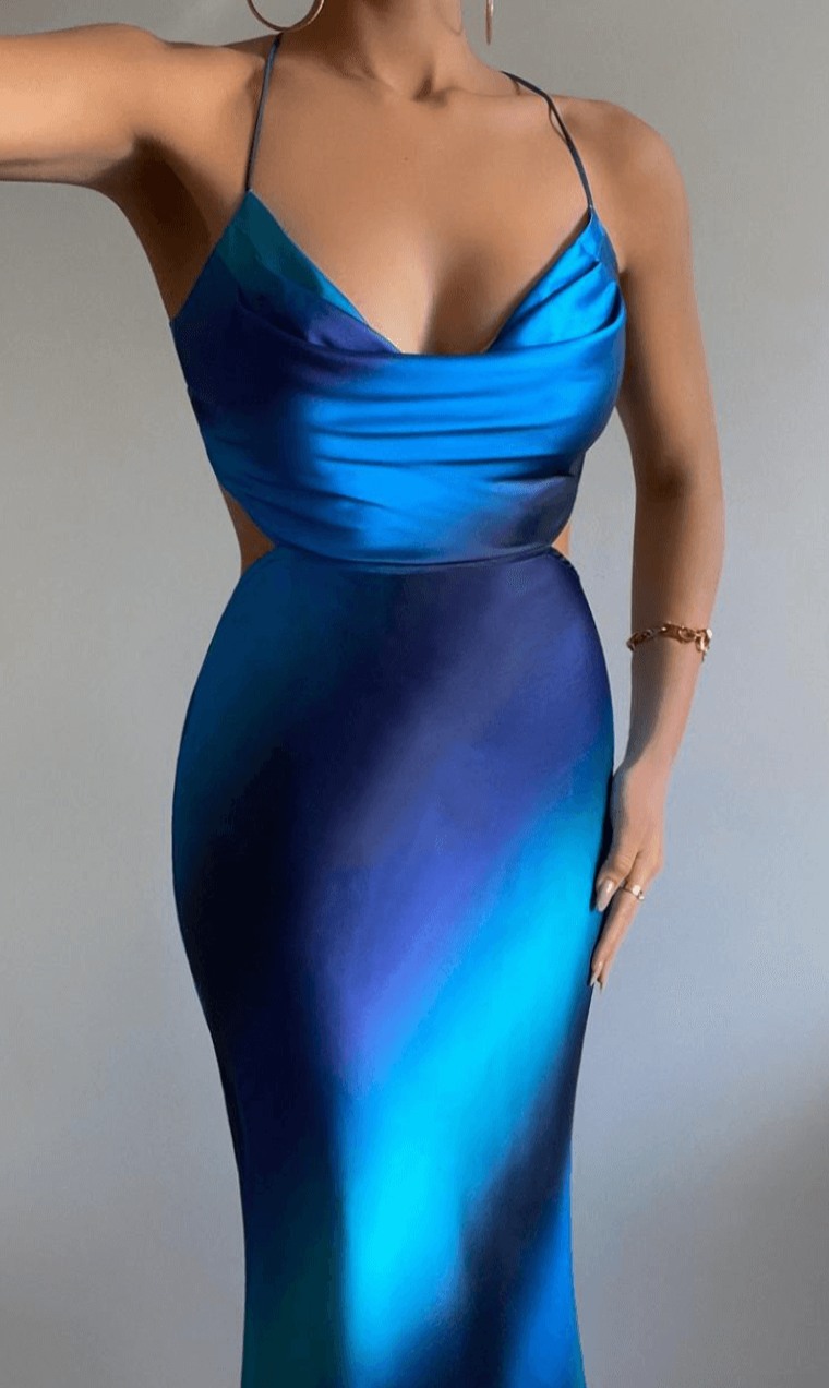 Runaway The Label Santorini Dress features a midi length, cowl neckline and tie dye material.