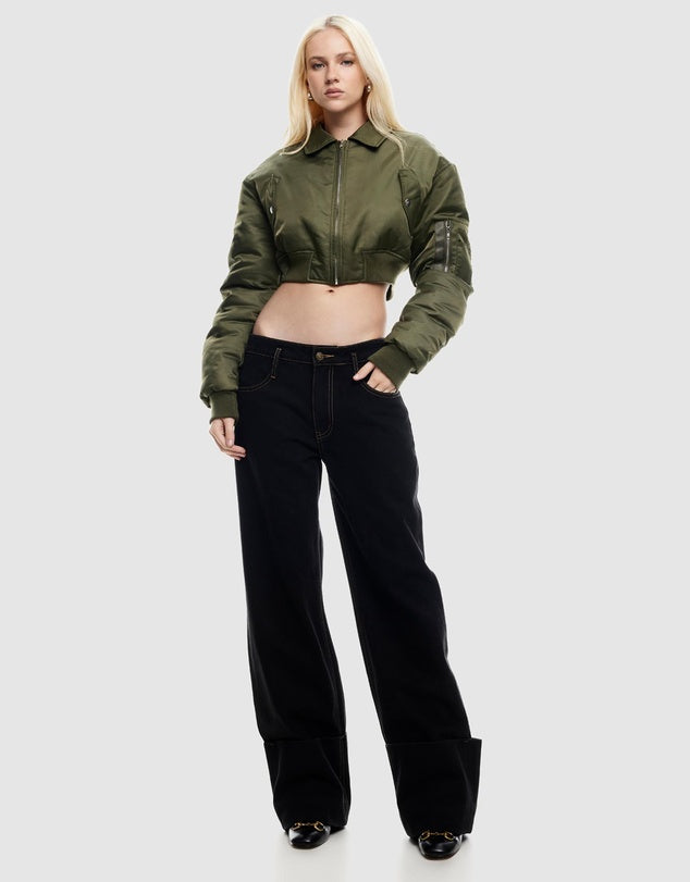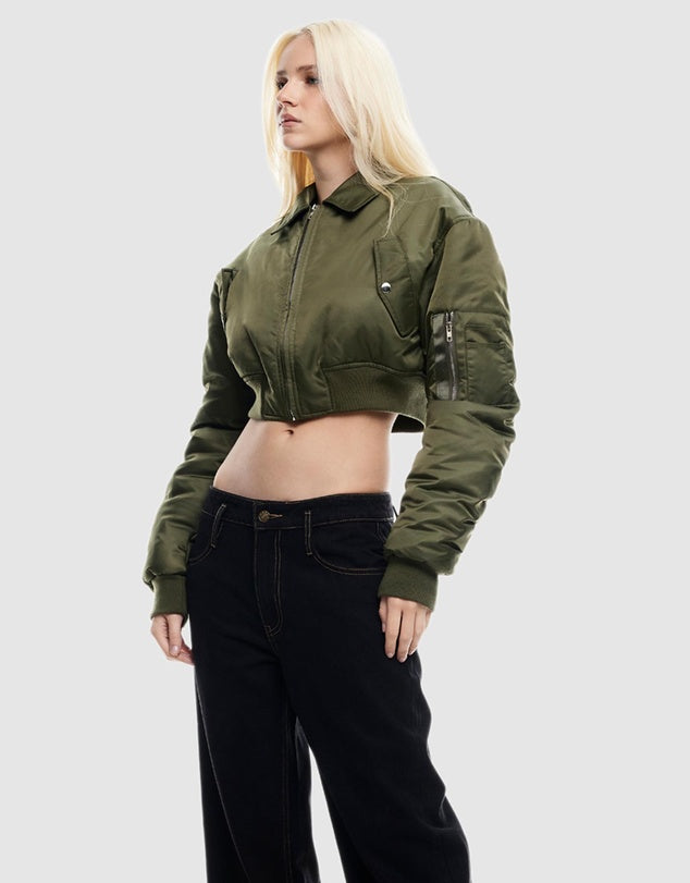 - Essential Cropped Bomber Features: