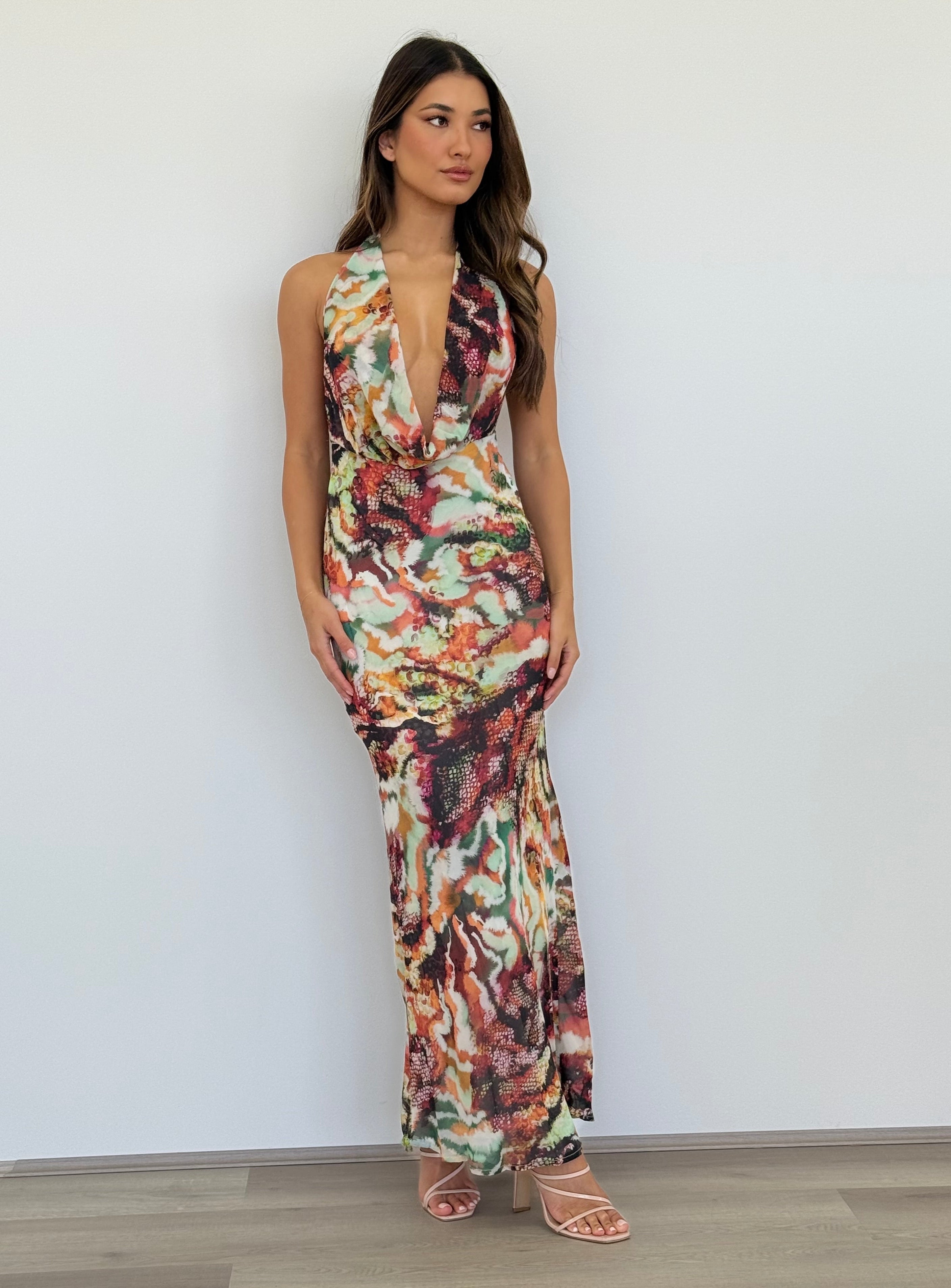 A plunging neckline and hip hugging silhouette, our Lexie Maxi Dress is the perfect sultry look.