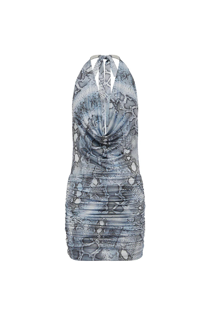 Runaway The Label - Lotus Halter Cowl Mini Dress in Steel Viper