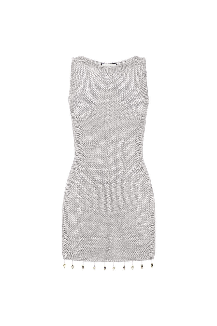 Crafted from a luxe knit with a subtle shimmer and adorned with delicate seashell hardware, our Ariya Mini Dress is made for sun-soaked moments at a beach club in St. Tropez.