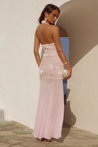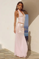 Featuring dreamy shimmering sequins and a halter neck, our Adeluna Halter Top is flirty and delicate. Pair it with the Adeluna Maxi Skirt for the complete look.