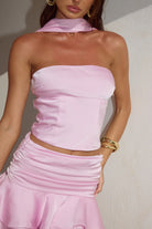 Sultry and sleek, our Laney Reverse Halter Neck Top is crafted from a luxe satin that flatters the figure with its strapless silhouette and clean lines. Pair this with our Laney Layered Ruched Mini Skirt for the complete look.