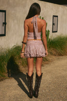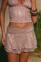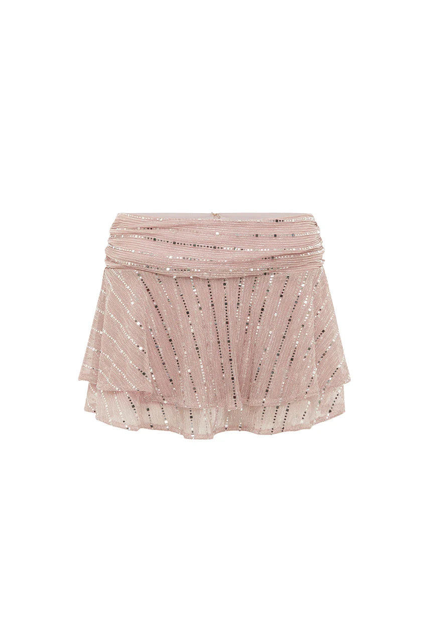 Cut through the crowd with our Nerissa Mini Skirt, crafted from a fine, shimmering mesh fabric, with a double layered frill. Pair with our Nerissa Halter Top for the complete look.