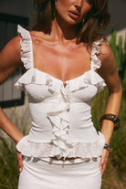 Runaway The Label - Roxelle Ruffle Split Front Top in White