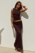 Sitting low and crafted from a knit fabric, our Orlean Maxi Skirt will be a staple in your wardrobe, pair this with our Orlean Top to complete the look.