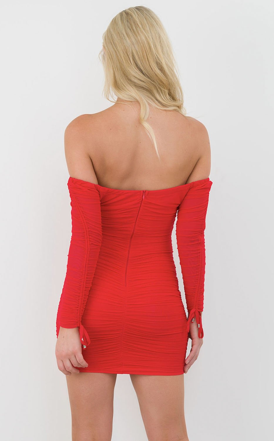 Our Call Me Crazy Dress has a straight neckline, drawstrings on sleeves and the neckline. This dress features a back invisible zip and ruched detail. Pair yours with black heels.