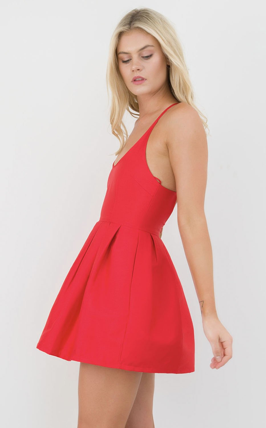 This scatter dress is backless style with crossed straps at the back, front pleats and round neck line. The belt does not come with the dress, available to purchase separately.