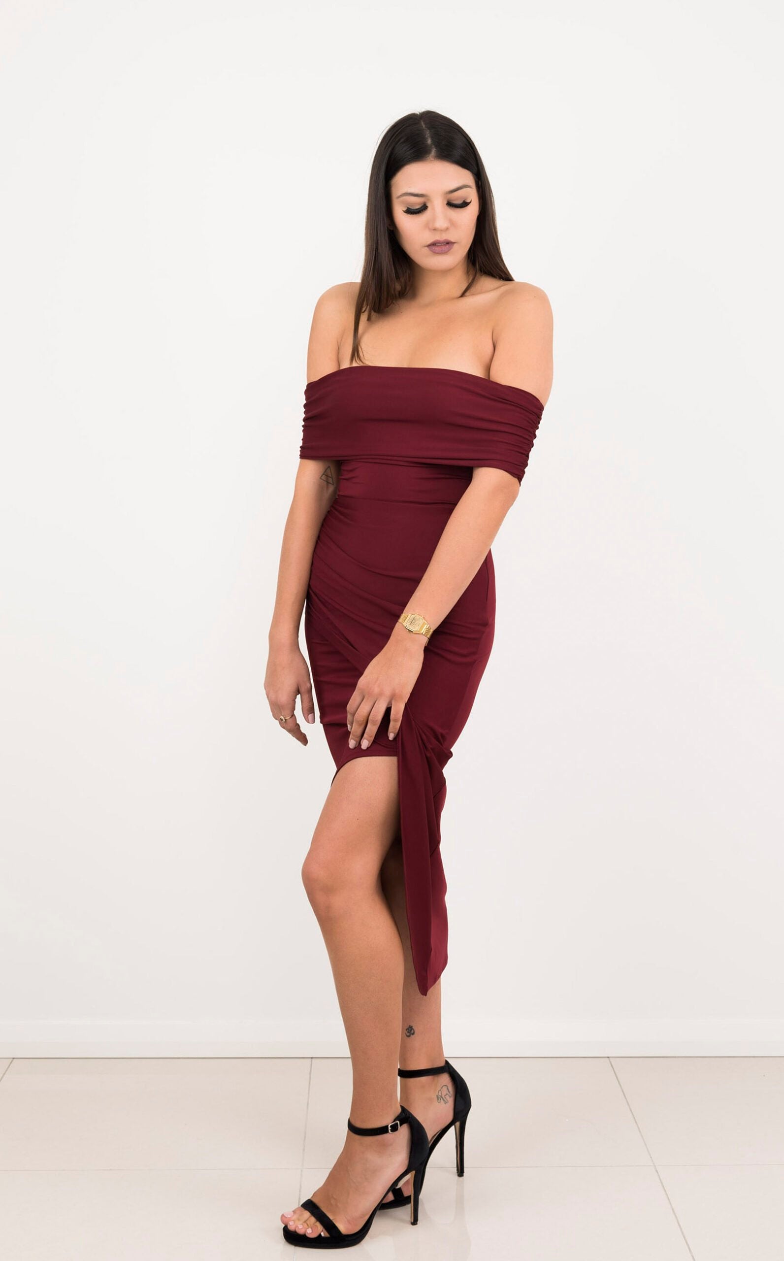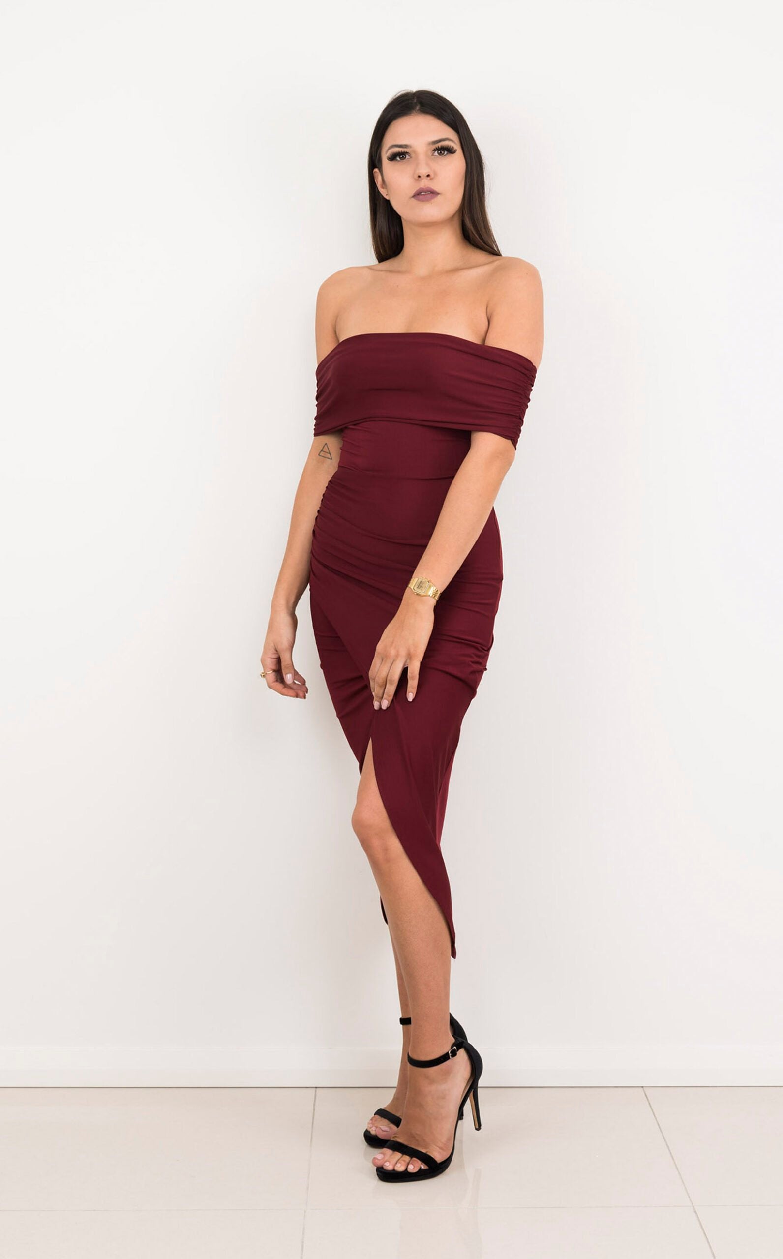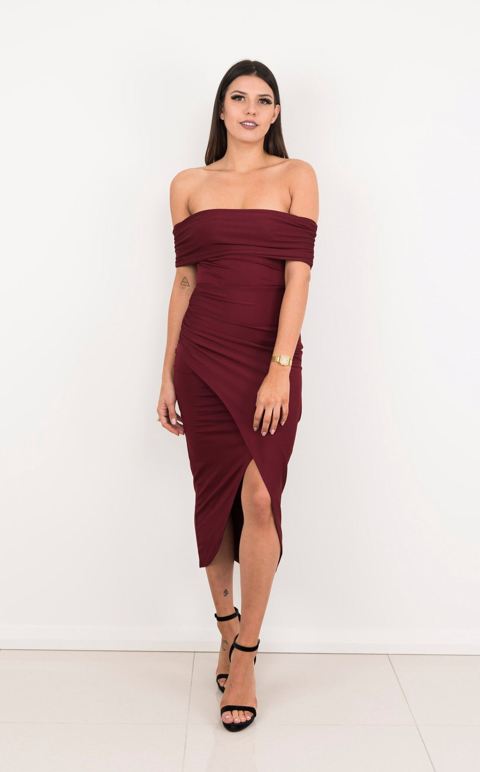 Our Get Luckier Off Shoulder Dress is perfect for a special occasion or a romantic date night. This dress features overlay fabric with ruching detail, invisible zip and a front side split. Pair it with black heels and a cute clutch.