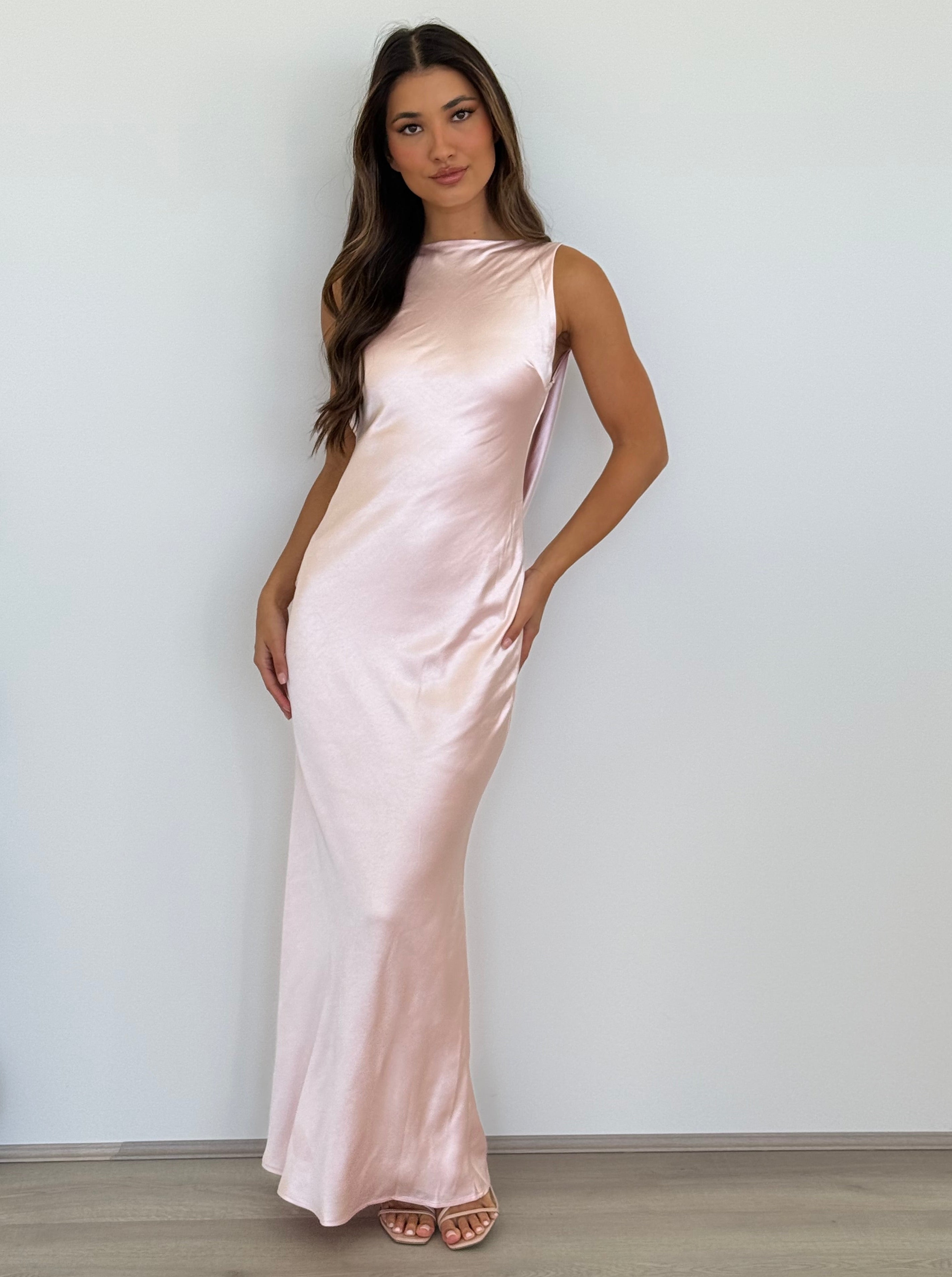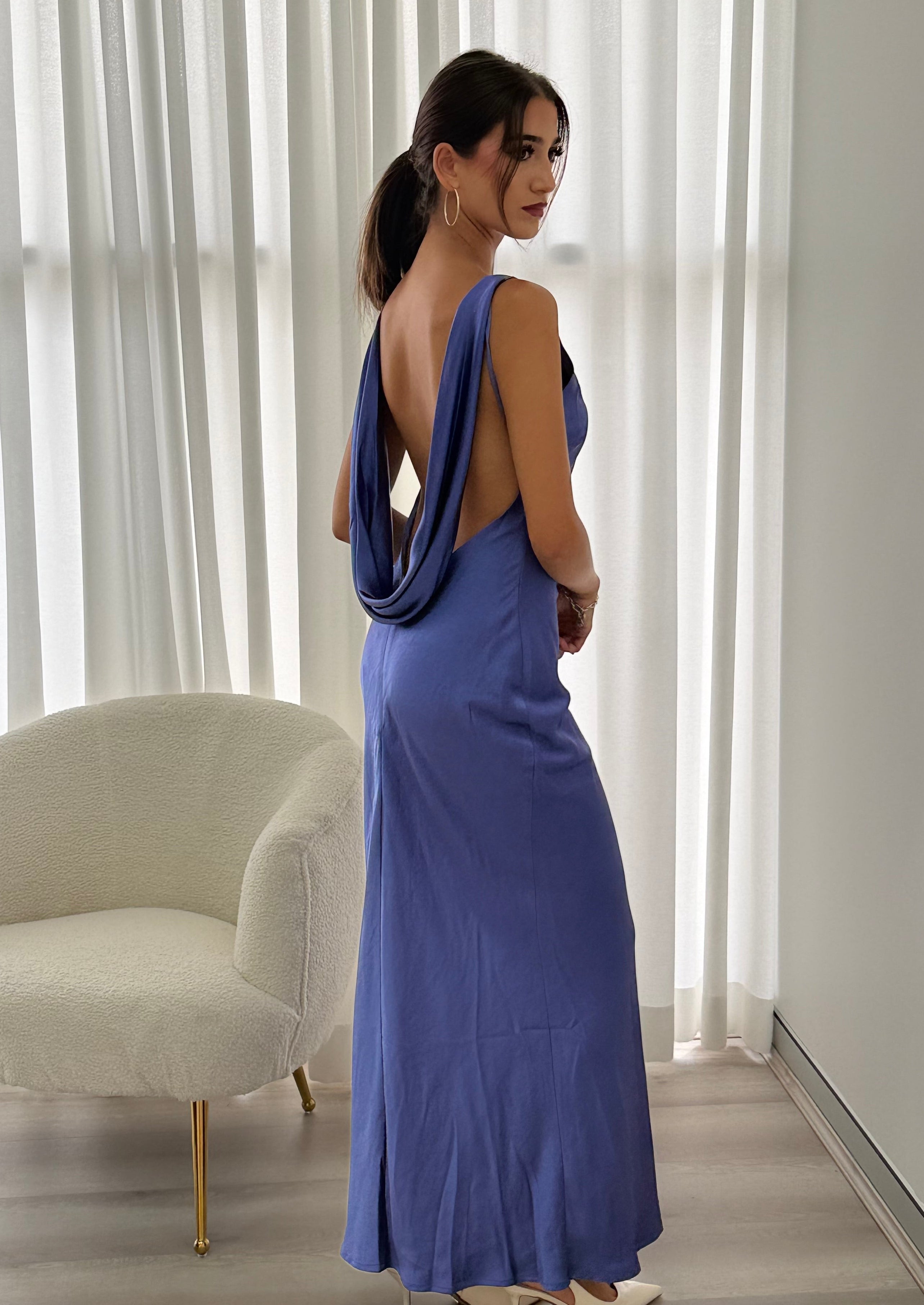 Featuring a boat neck and open back with a scooped sash detail our Raelyn Maxi Dress is a classic and elegant piece that will see you through any wedding or formal event.