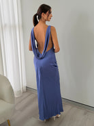 Featuring a boat neck and open back with a scooped sash detail our Raelyn Maxi Dress is a classic and elegant piece that will see you through any wedding or formal event.