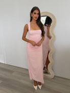 Runaway The Label - Sharni Ruched Midi Dress in Pink