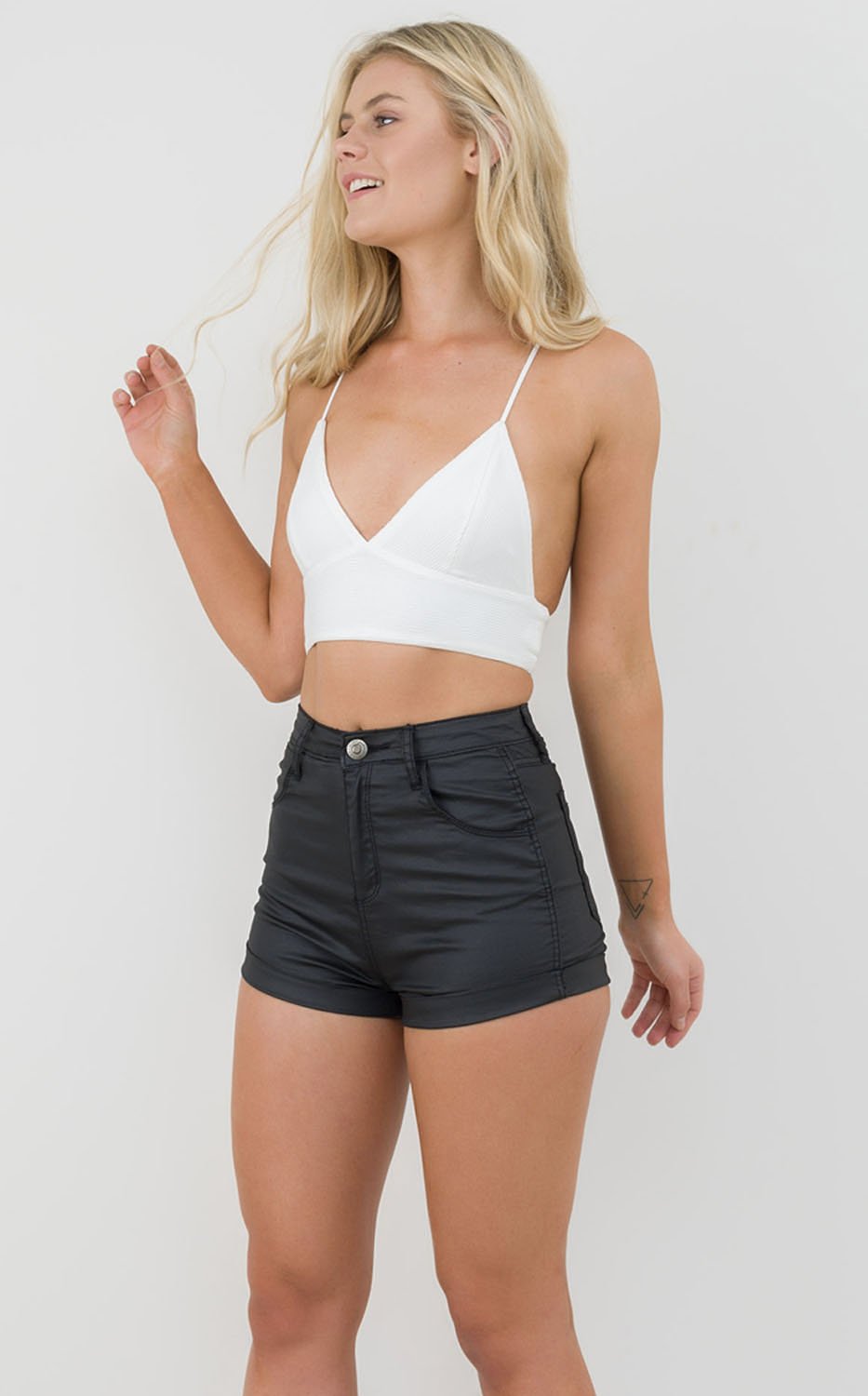 Our Rain Or Shine Crop Top has adjustable crossover straps and a v neckline. Pair this crop top with a skirt and heels.