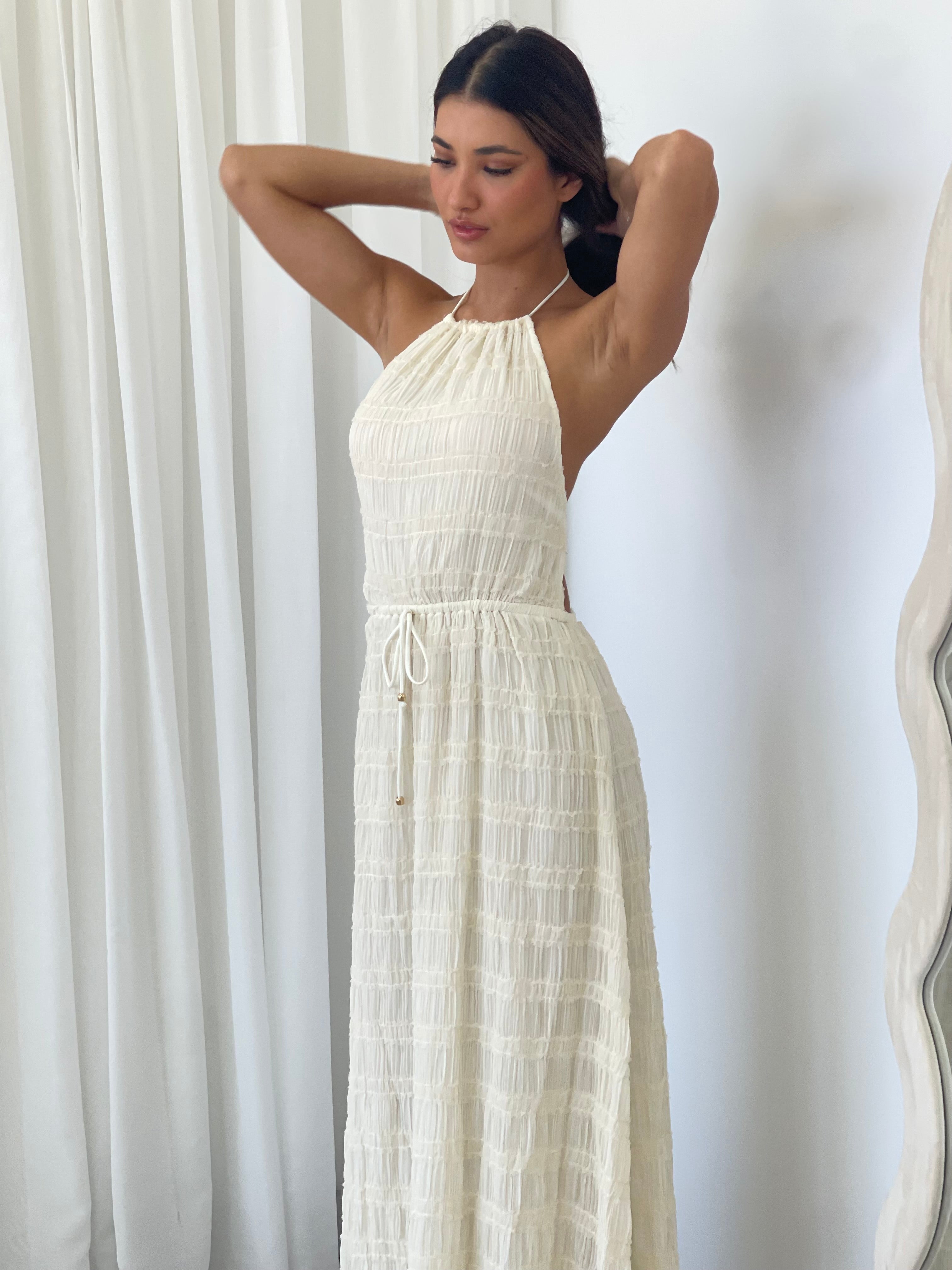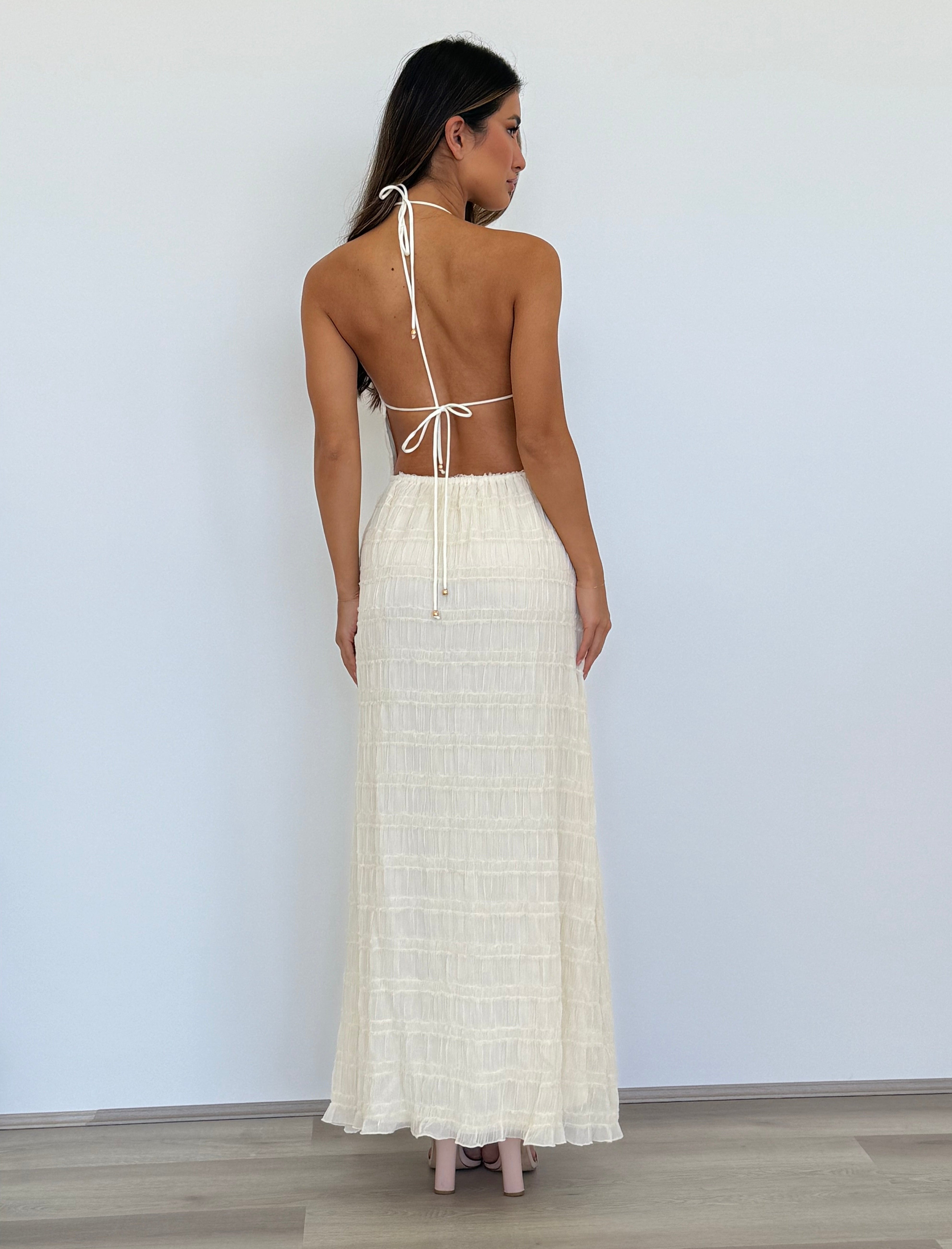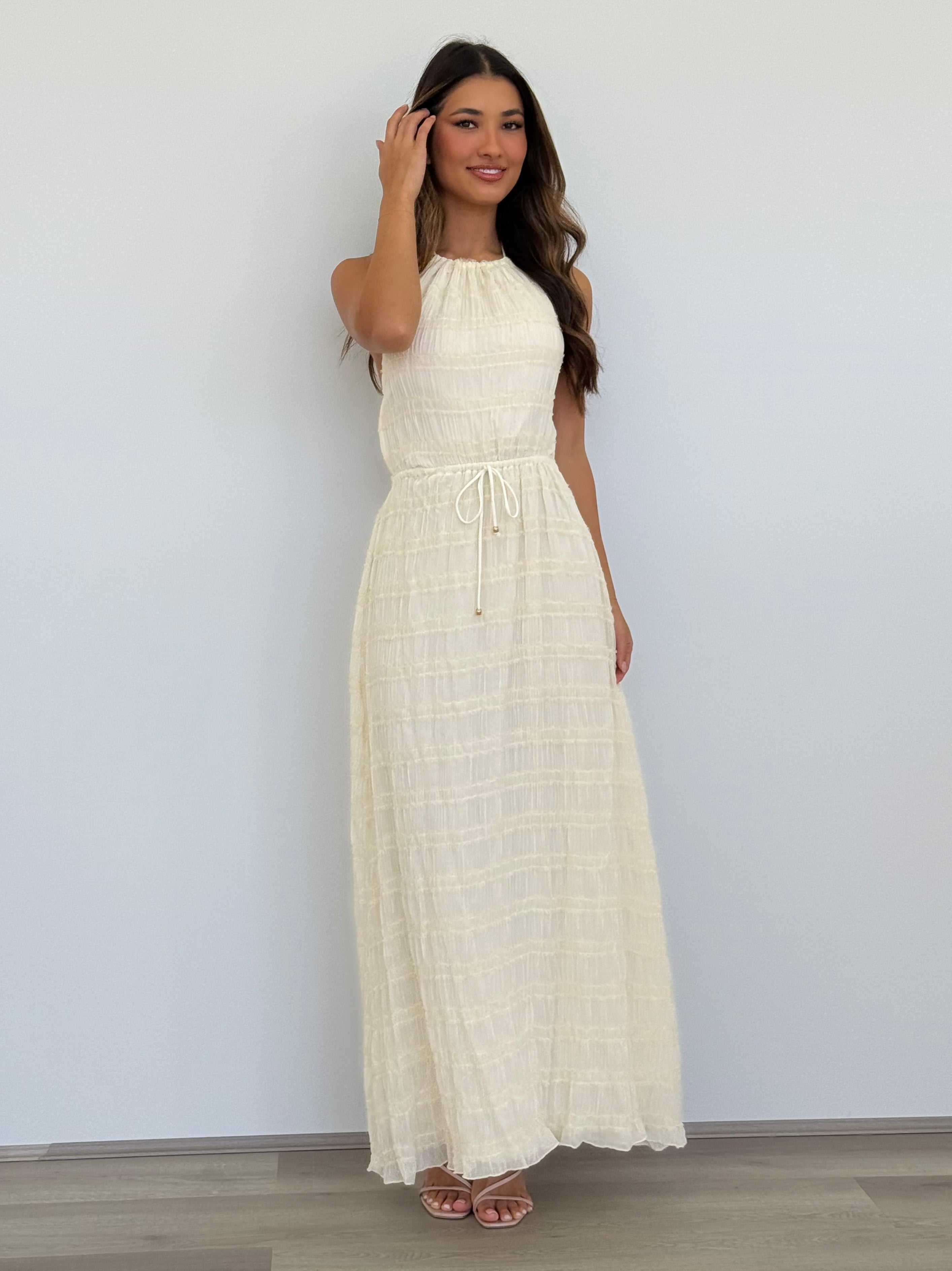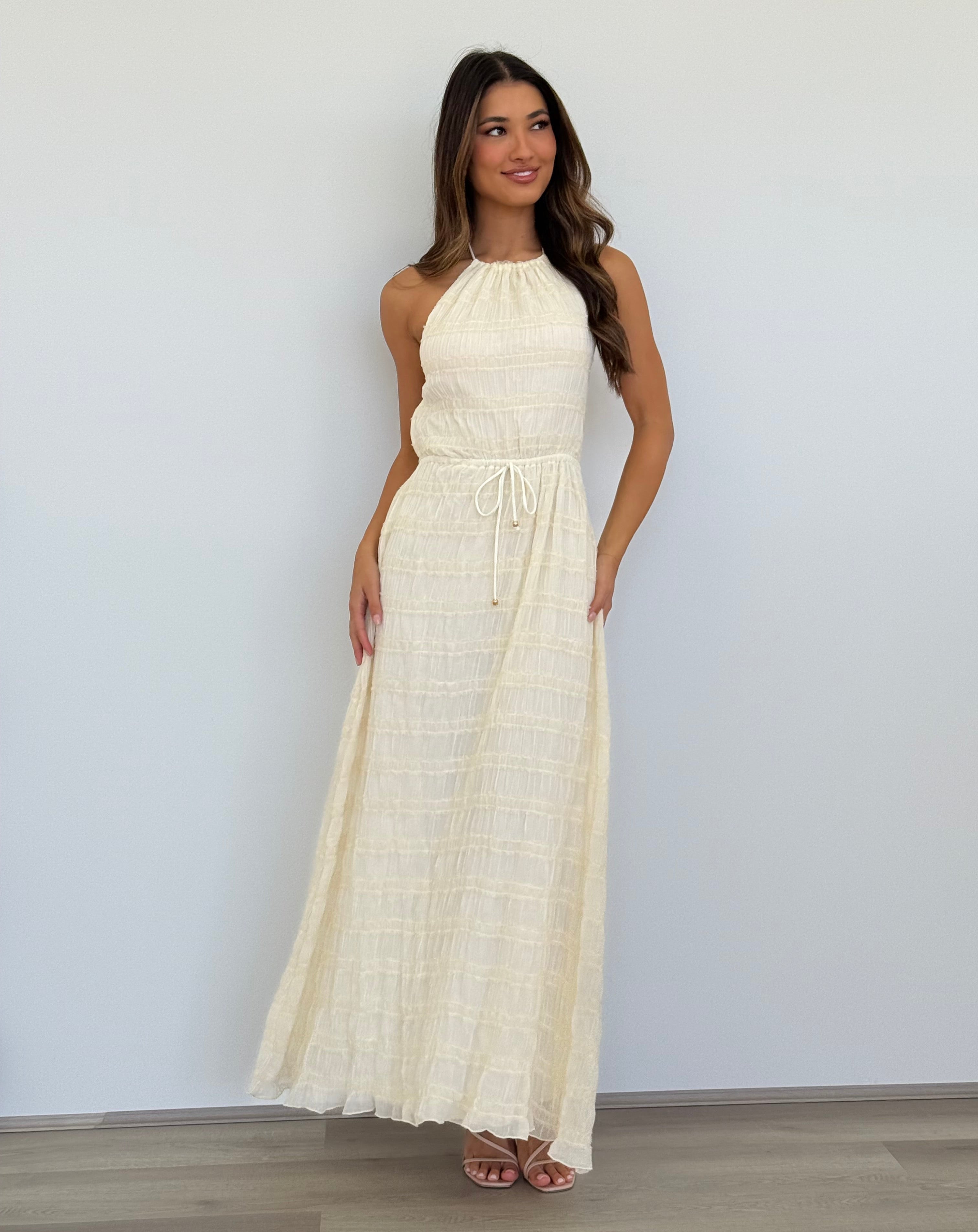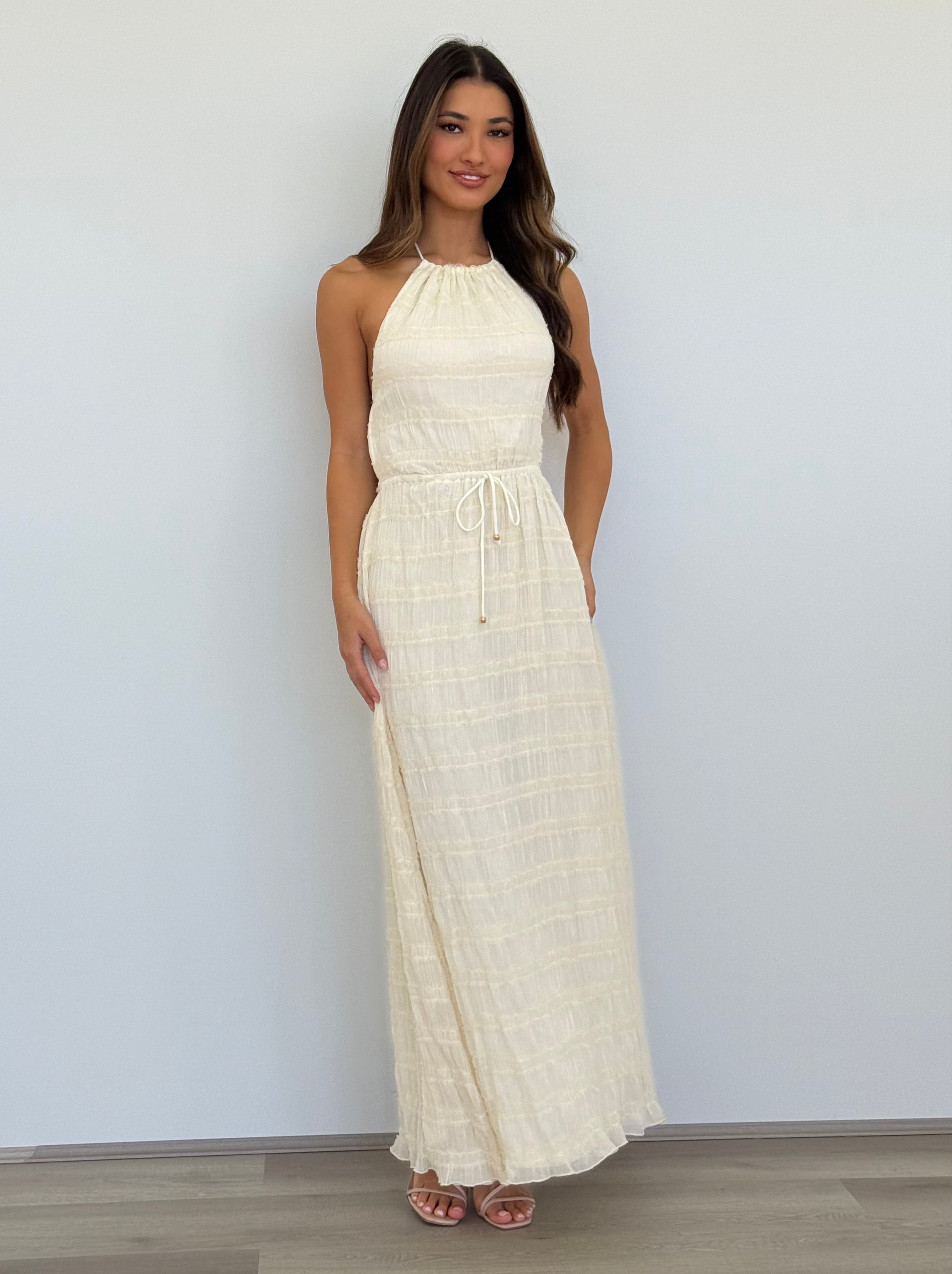 Winsome Girl - Soleil Halter Maxi Dress in Cream