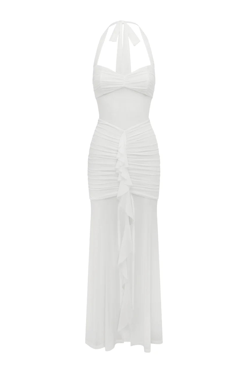 Crafted from a luxe mesh fabric, our Tallula Maxi Dress features sheer panels and a side split, your perfect holiday dinner look.